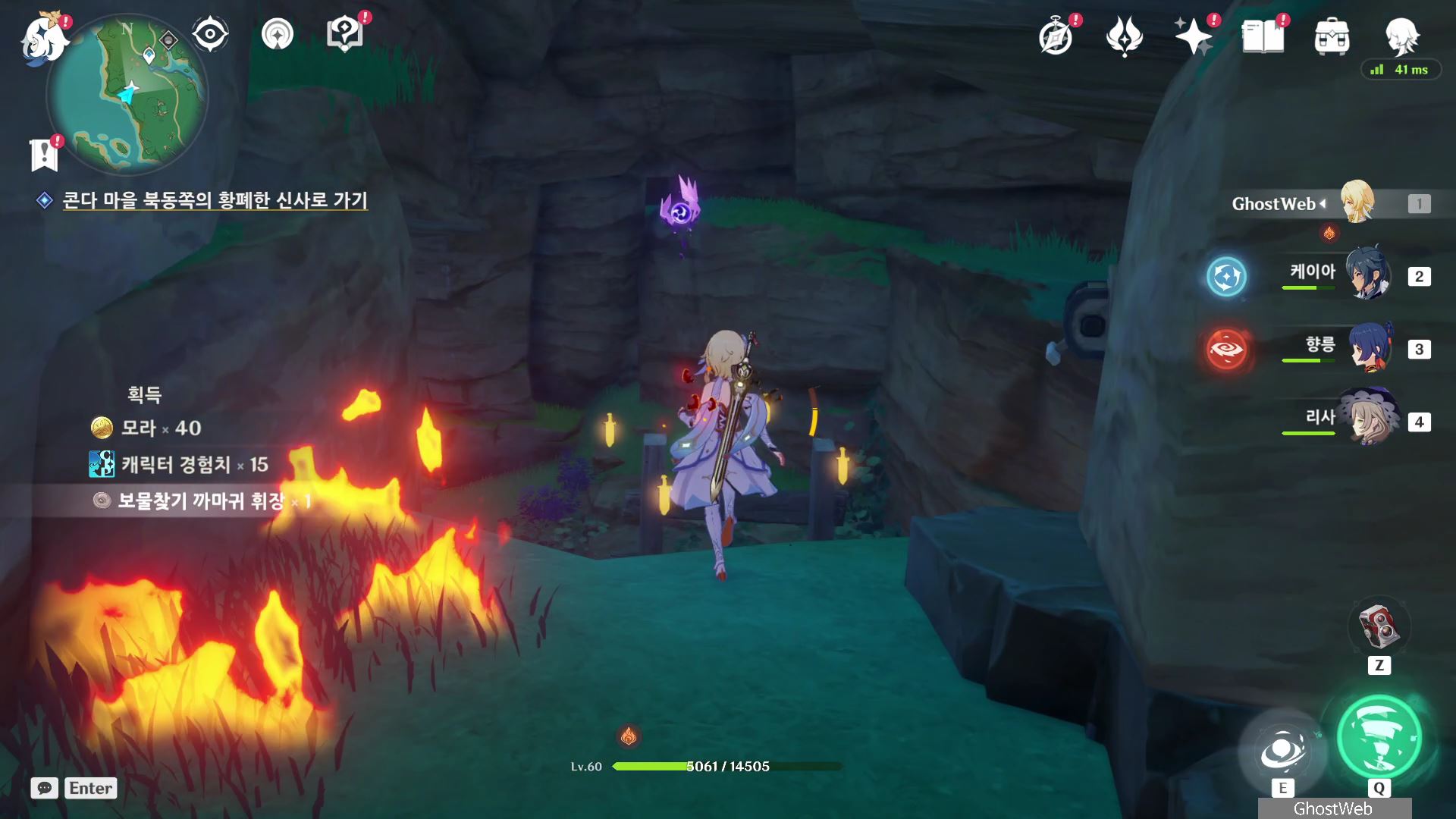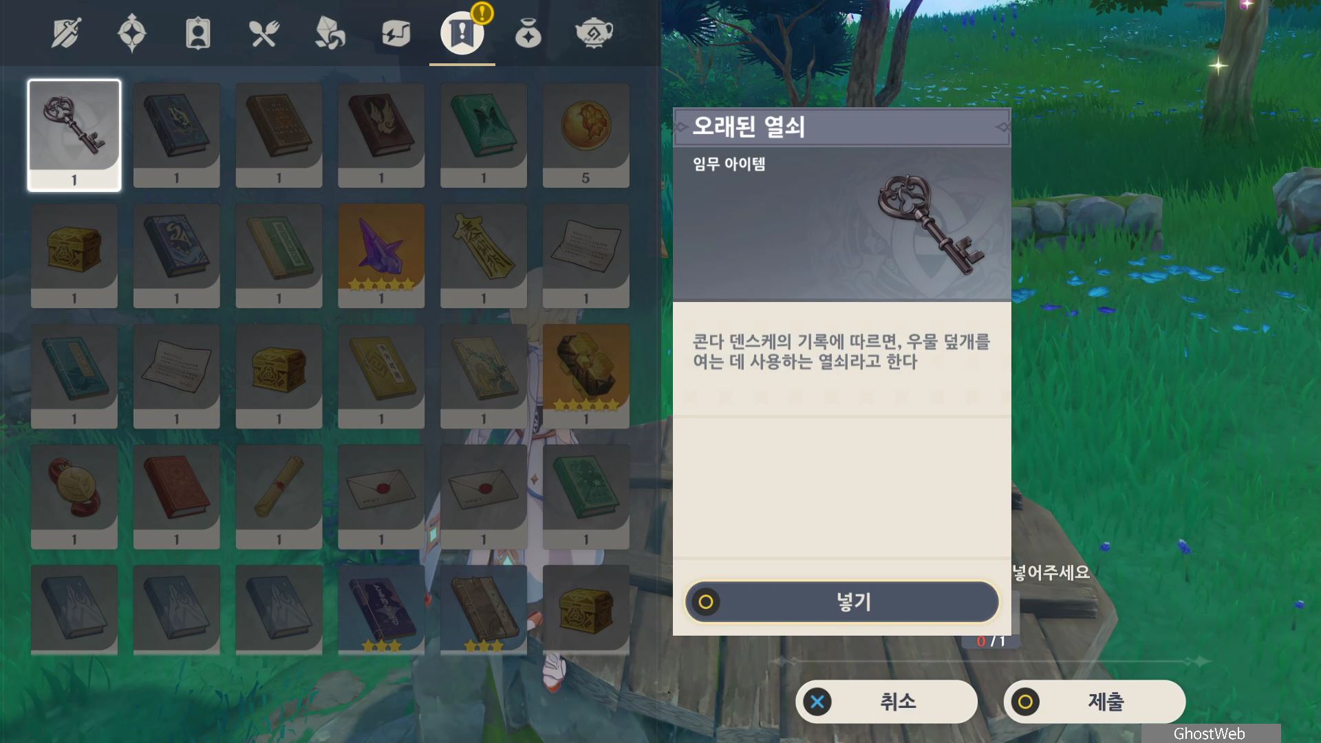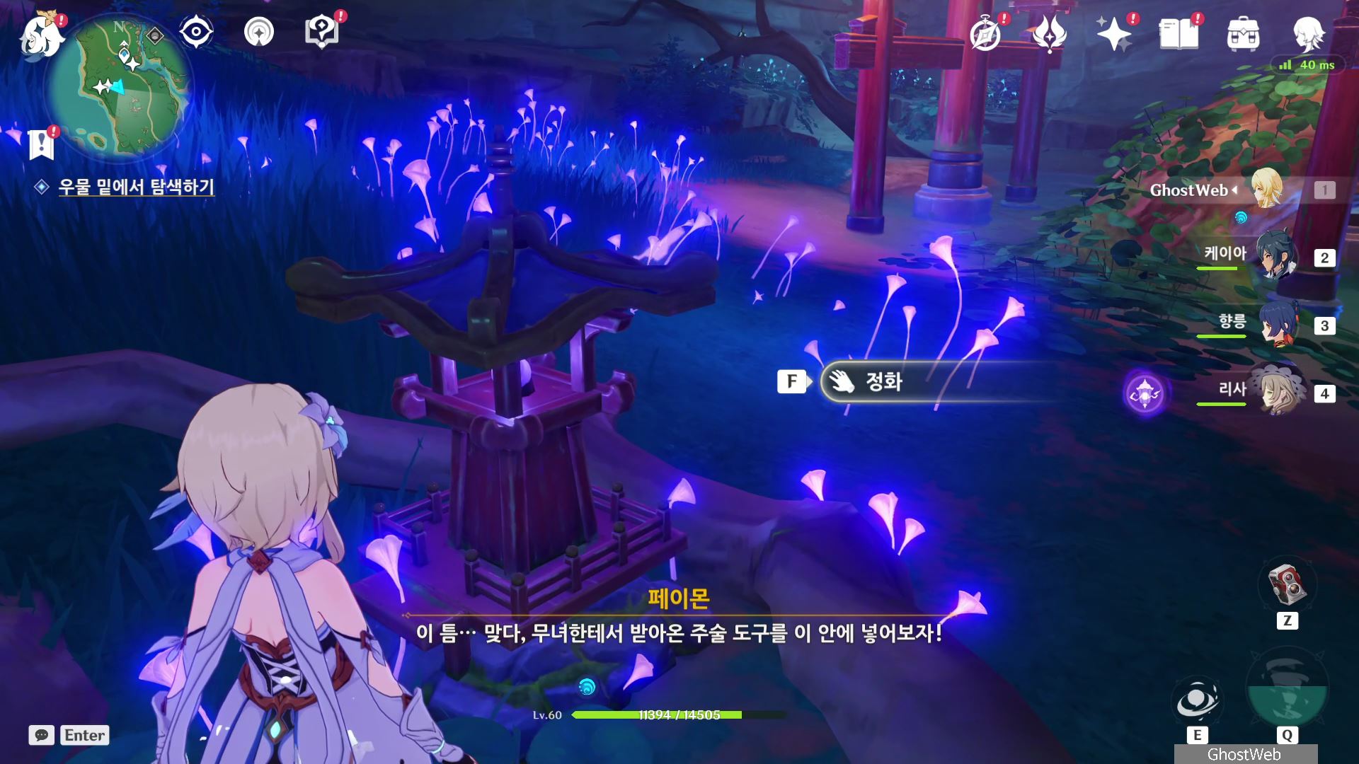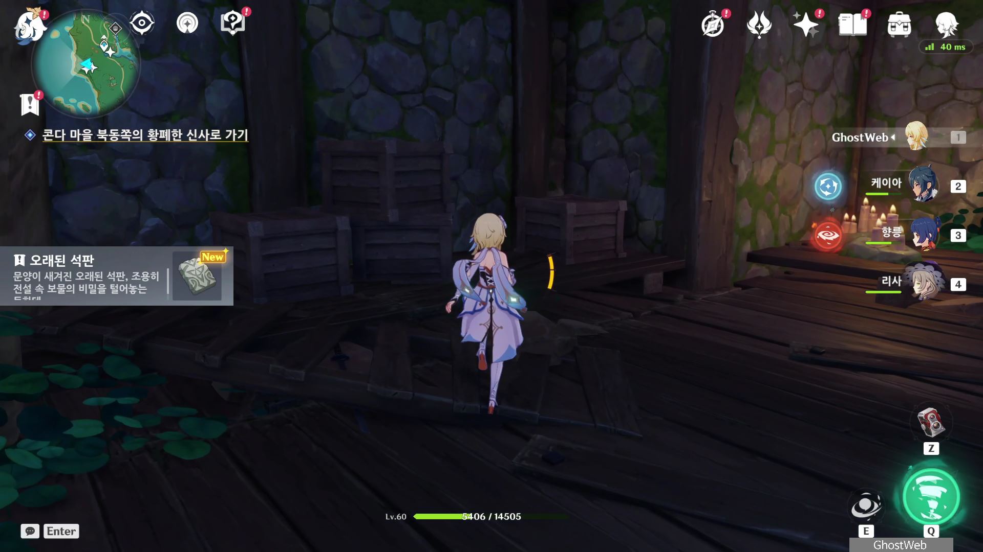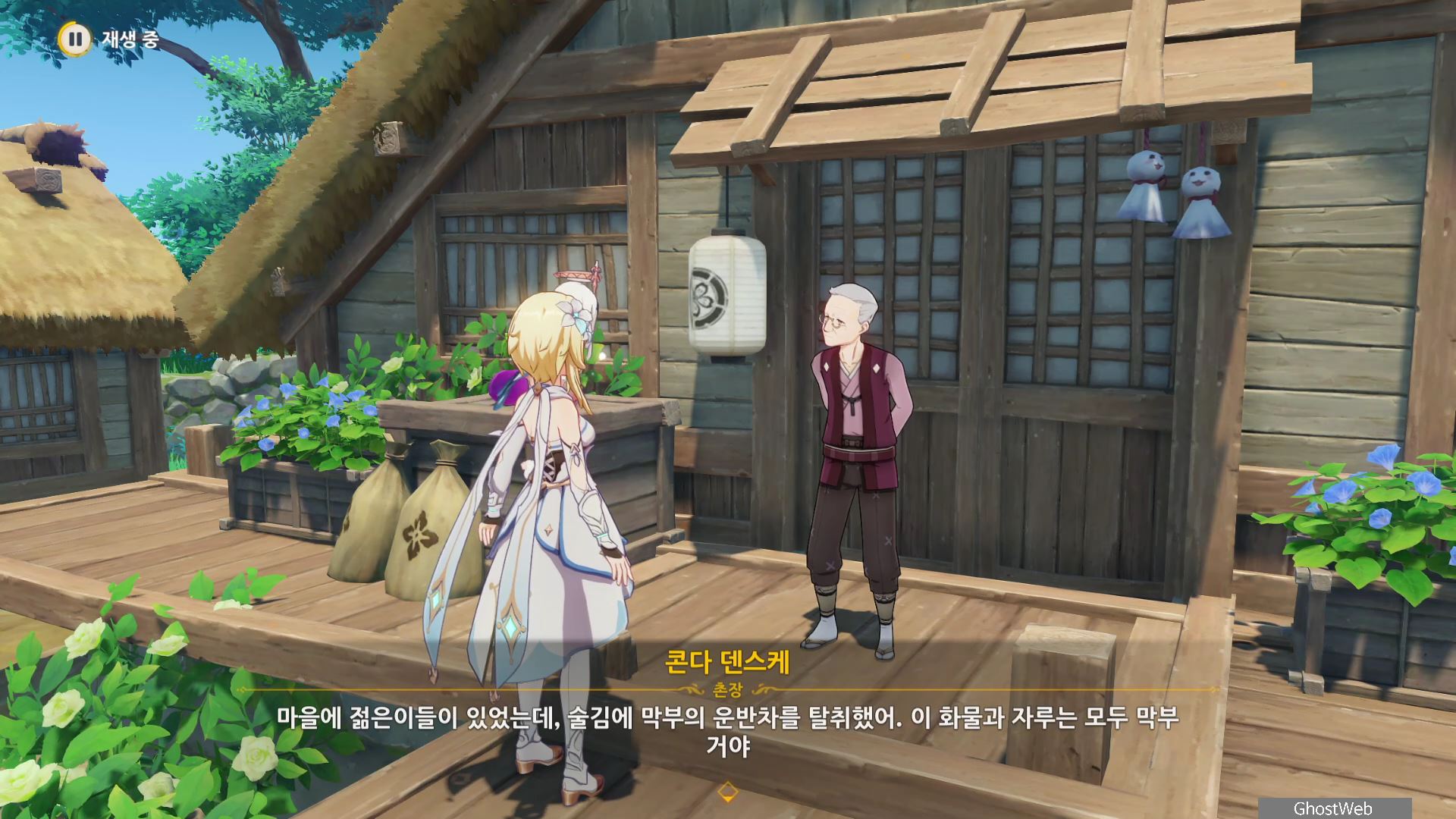 석상에 번개 원소 공격을 가해 주술 도구를 꺼내주면, 콘다 마을에 풀어야 할 결계가 있다며 여행자에게 비밀 조사를 외로와 결계를 풀어달라고 부탁해요.
