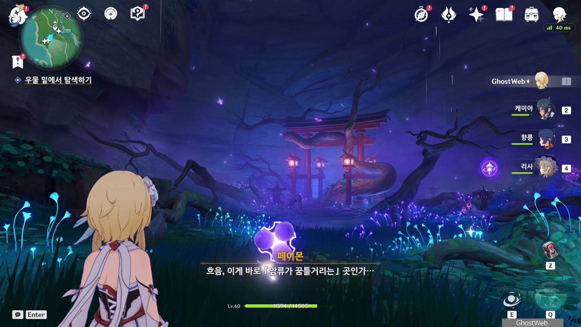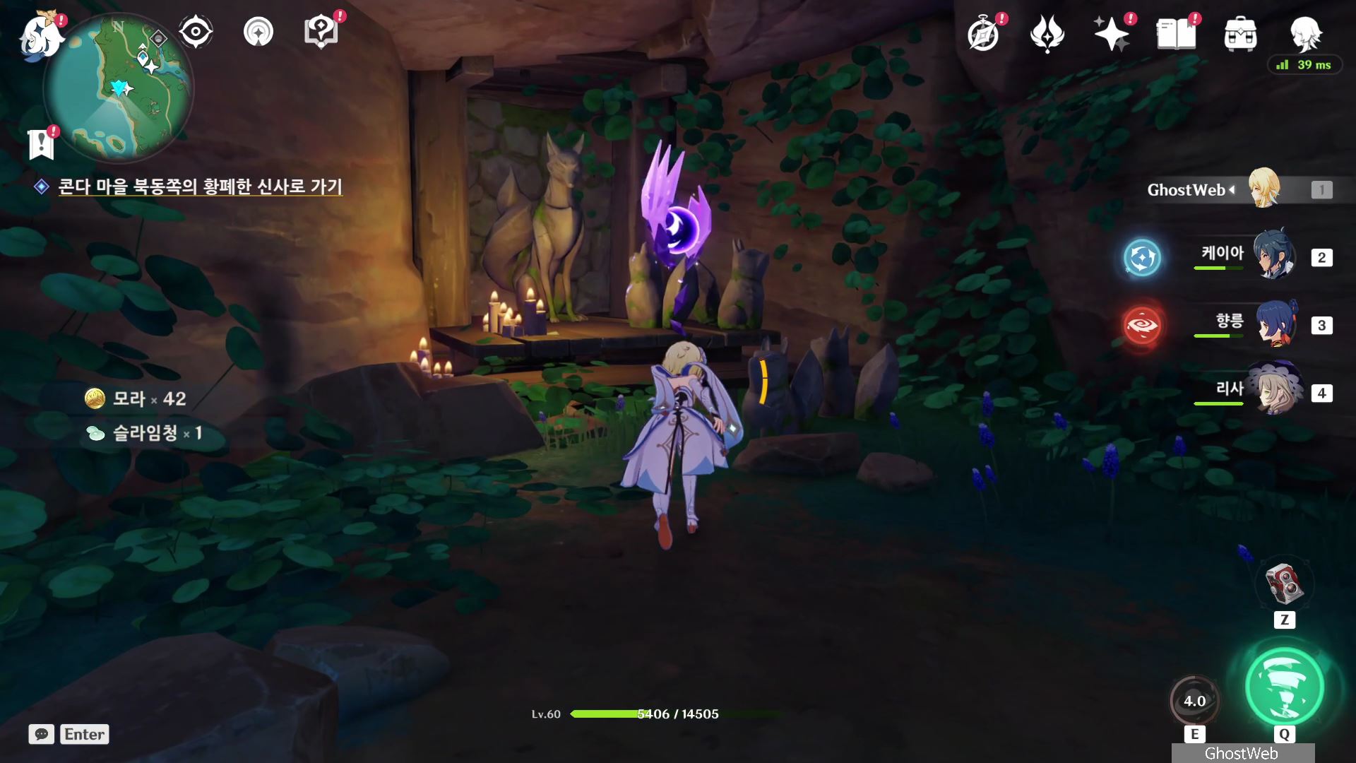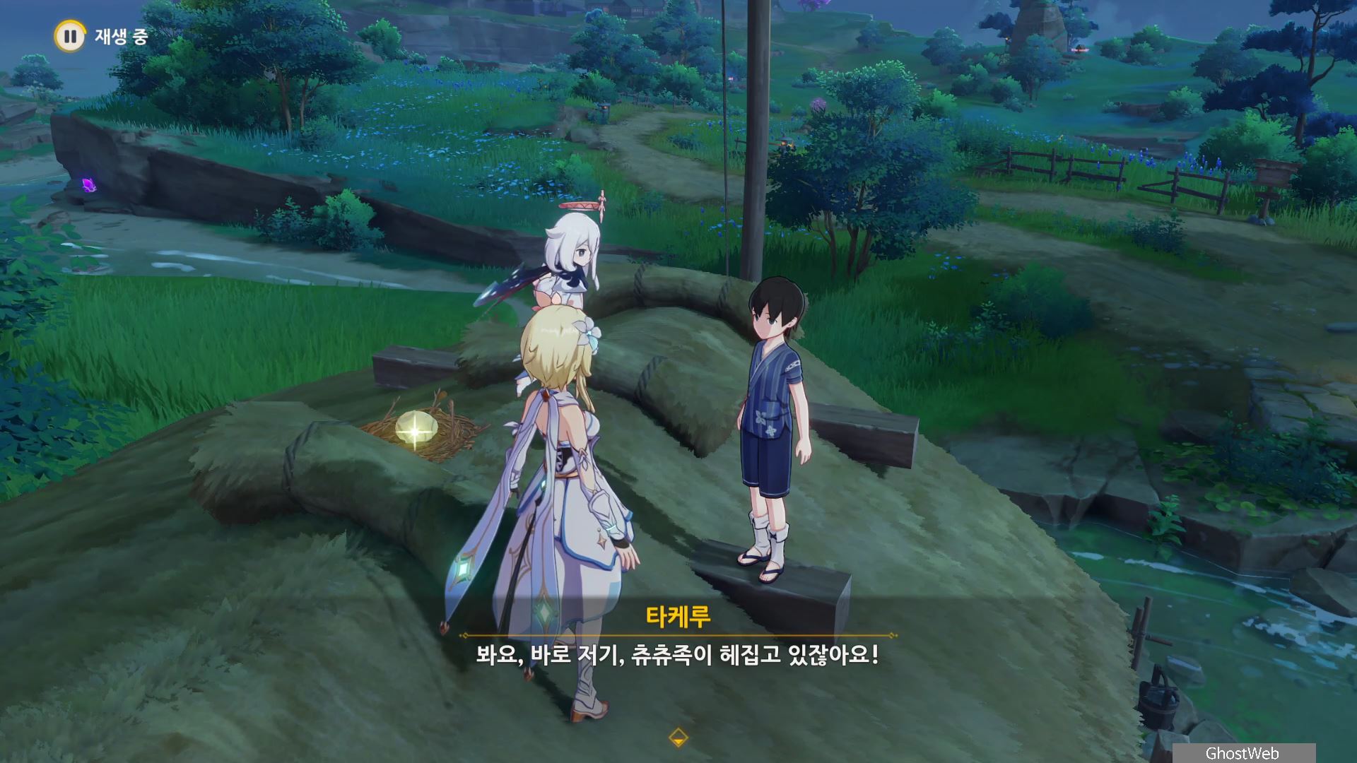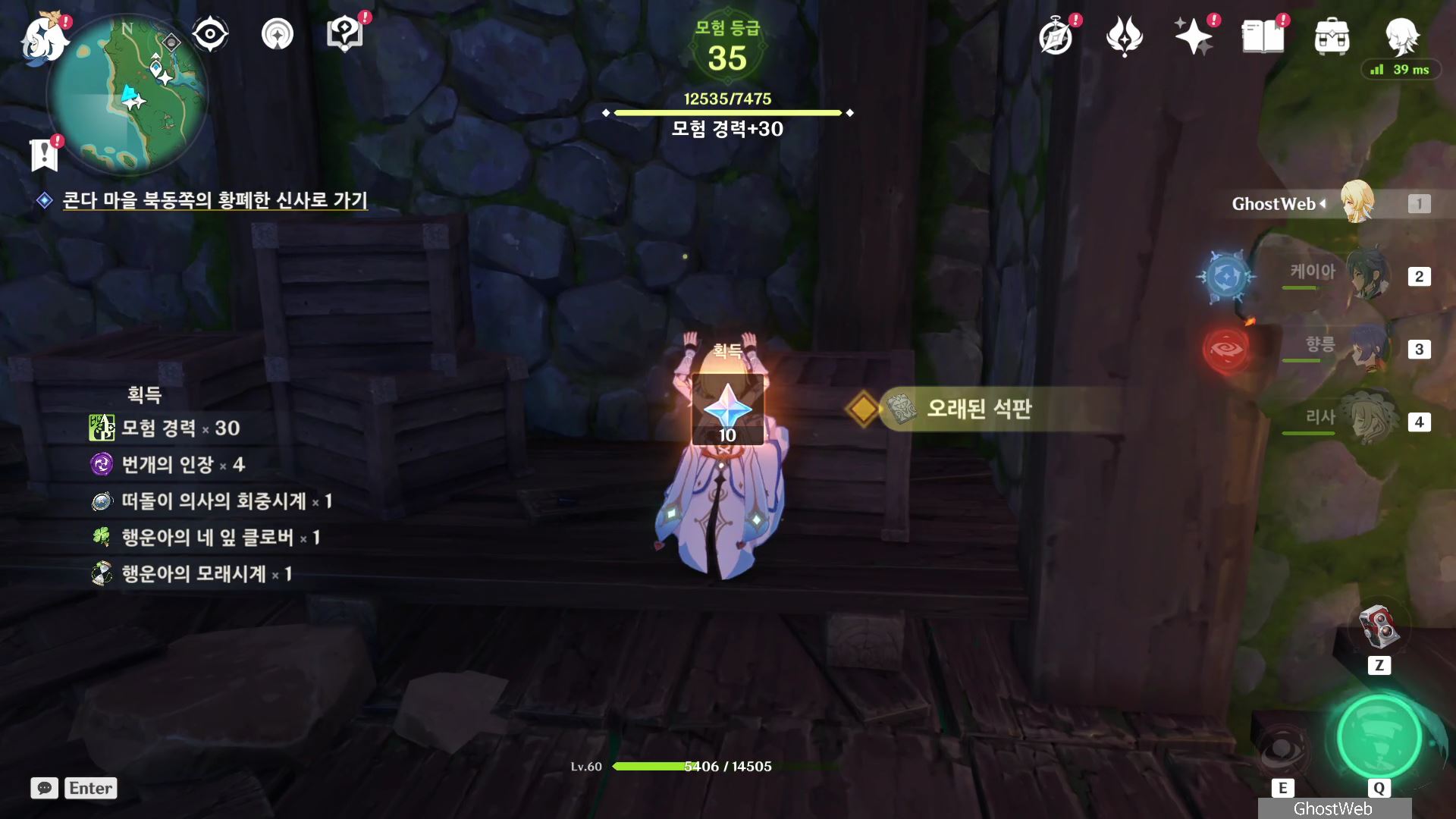 석상에 번개 원소 공격을 가해 주술 도구를 꺼내주면, 콘다 마을에 풀어야 할 결계가 있다며 여행자에게 비밀 조사를 외로와 결계를 풀어달라고 부탁해요.