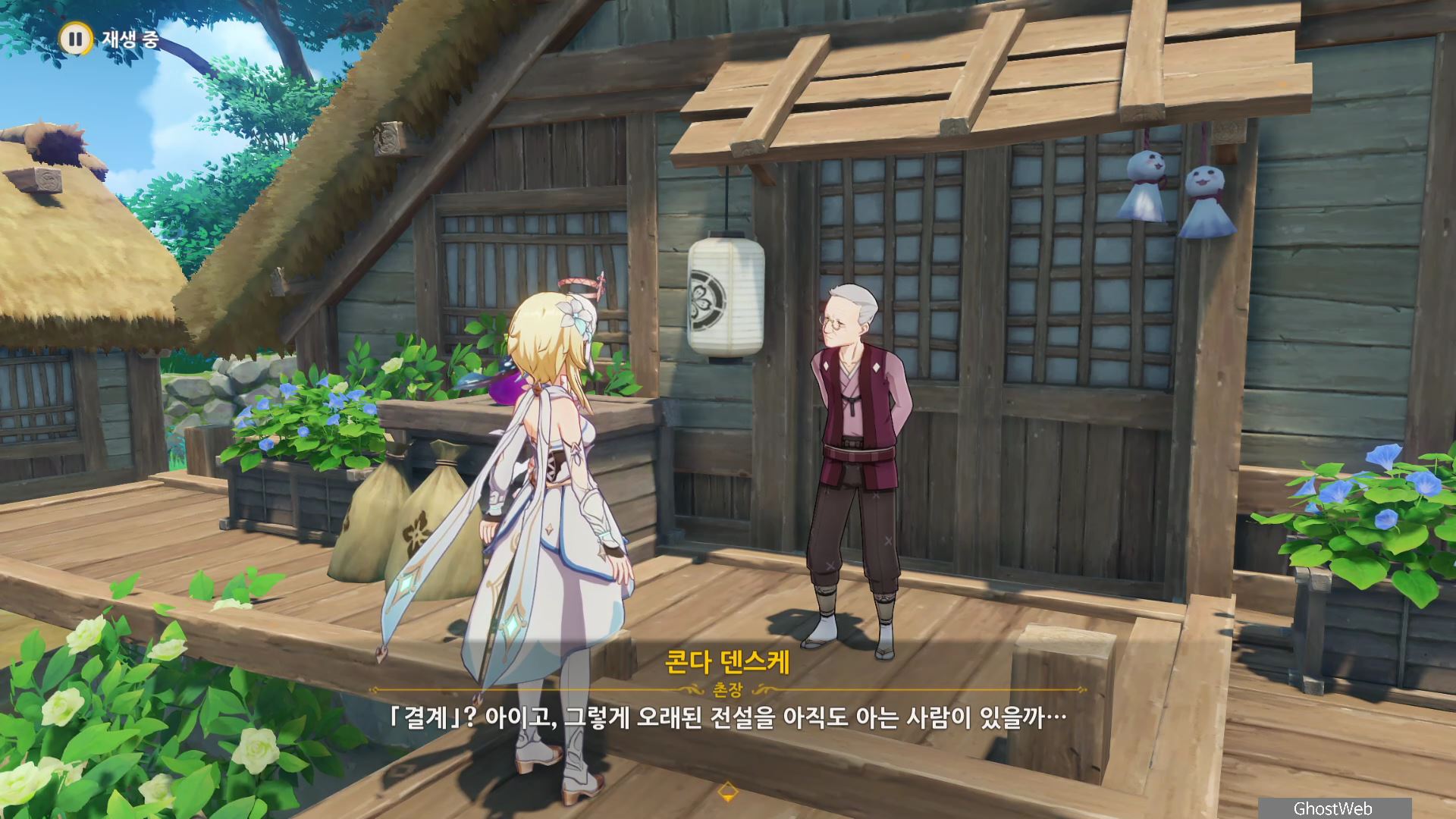 콘다 이야기는 <신성한 벚나무 대액막이>의 시작점으로 콘다 마을 입구 전 워프 포인트에 서있는 무녀인 <하나치루사토>와 대화를 하면 임무를 진행할 수 있어요.