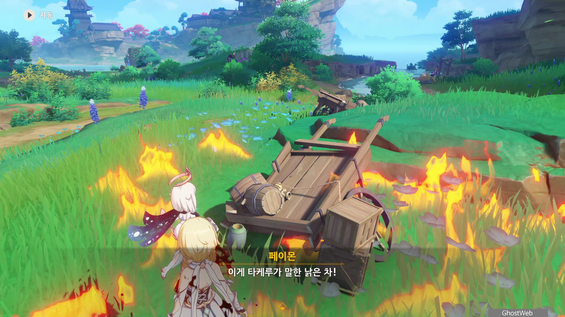 [원신] 재앙신 주상 - 신성한 벚나무 대액막이 (콘다 마을 북동쪽 황폐한 신사 결계 푸는 방법, 기