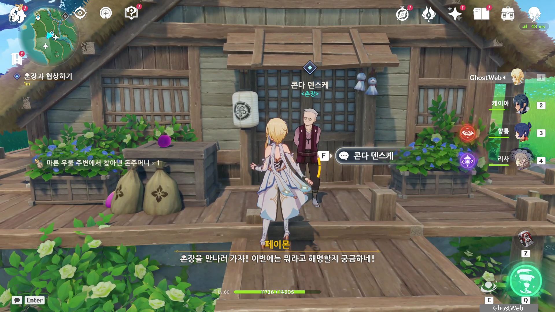 콘다 마을로 가서 촌장인 <콘다 덴스케>에게 말을 걸어 비밀에 대한 이야기를 하니 직접 찾아보라고 하는데, 마을에 있는 사람들에게 정보를 묻기 시작해요.