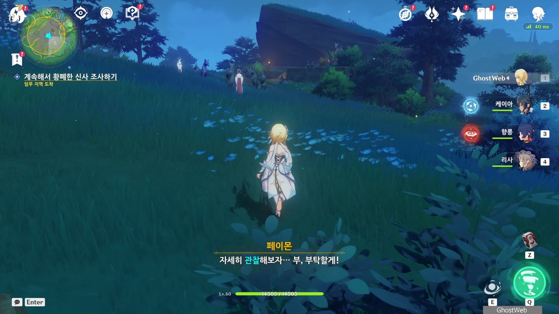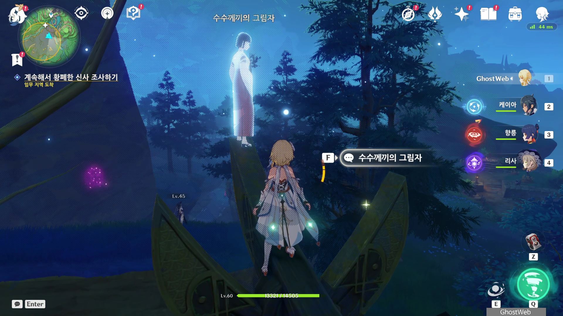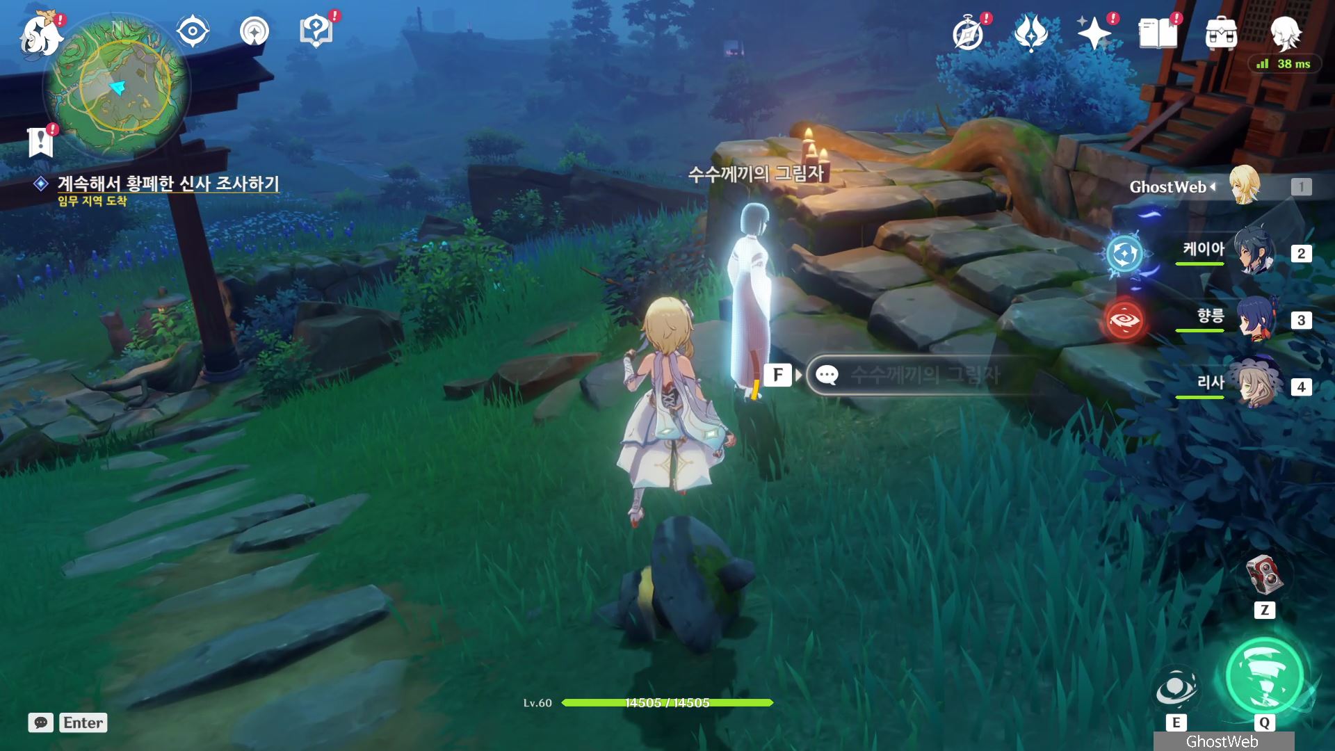 ○ 다음 임무 (액막이, 진수의 숲/황해/카미사토 저택 밖 북동쪽 물가 땅굴 속)
