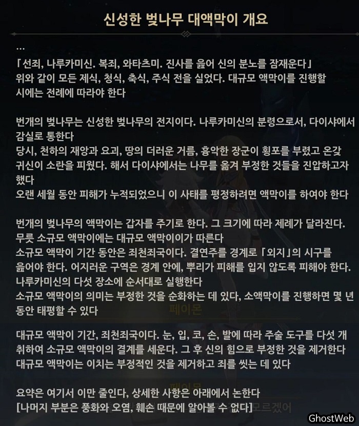이번에는 <신성한 벚나무 대액막이>의 <재앙신 주상> 파트를 정리해보도록 할게요.