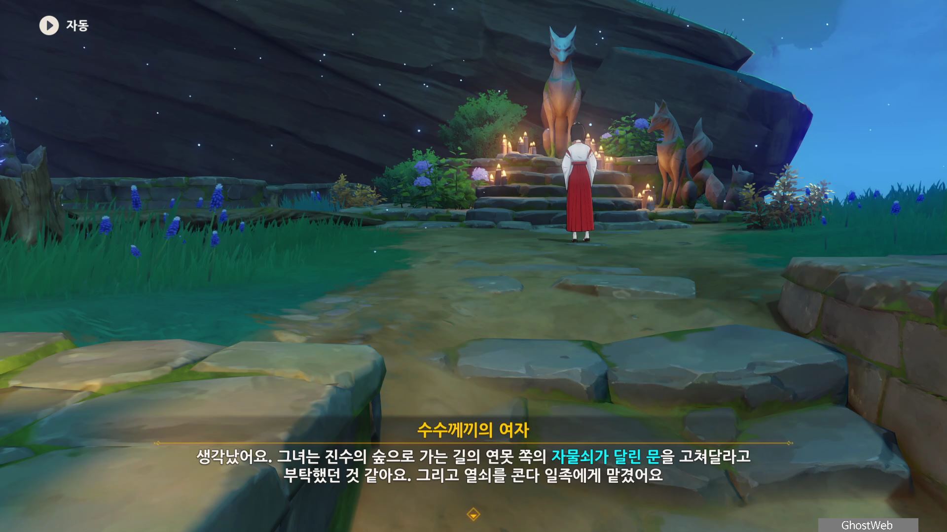 (인도 순서가 틀리거나 모인 무녀에게 말을 걸 경우 해당 무녀 들이 최초 시작점으로 돌아갈 수 있으니 참고하세요!)