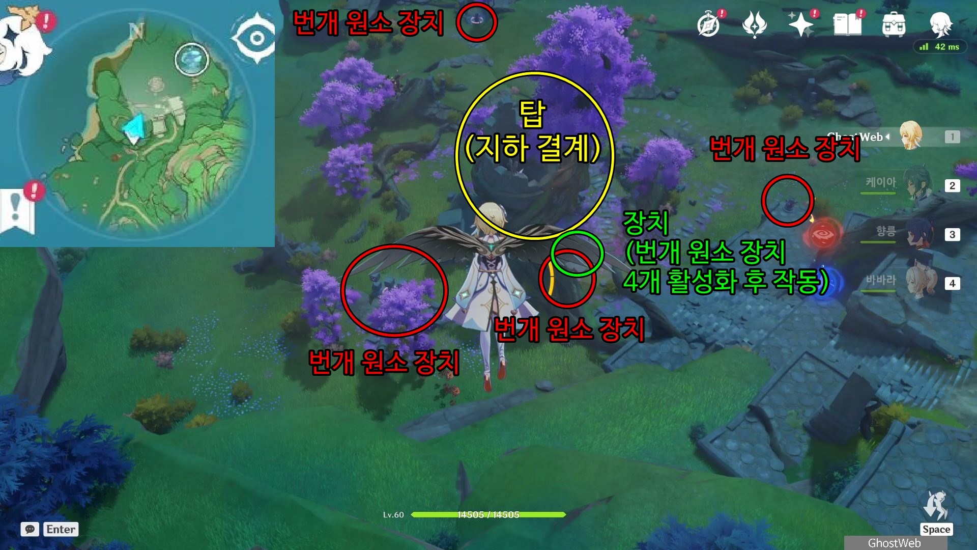 [원신] 콘다 이야기 (하나치루사토, 콘다 마을 우물 결계 푸는 방법, 우물 밑에서 탐색하기, 번개
