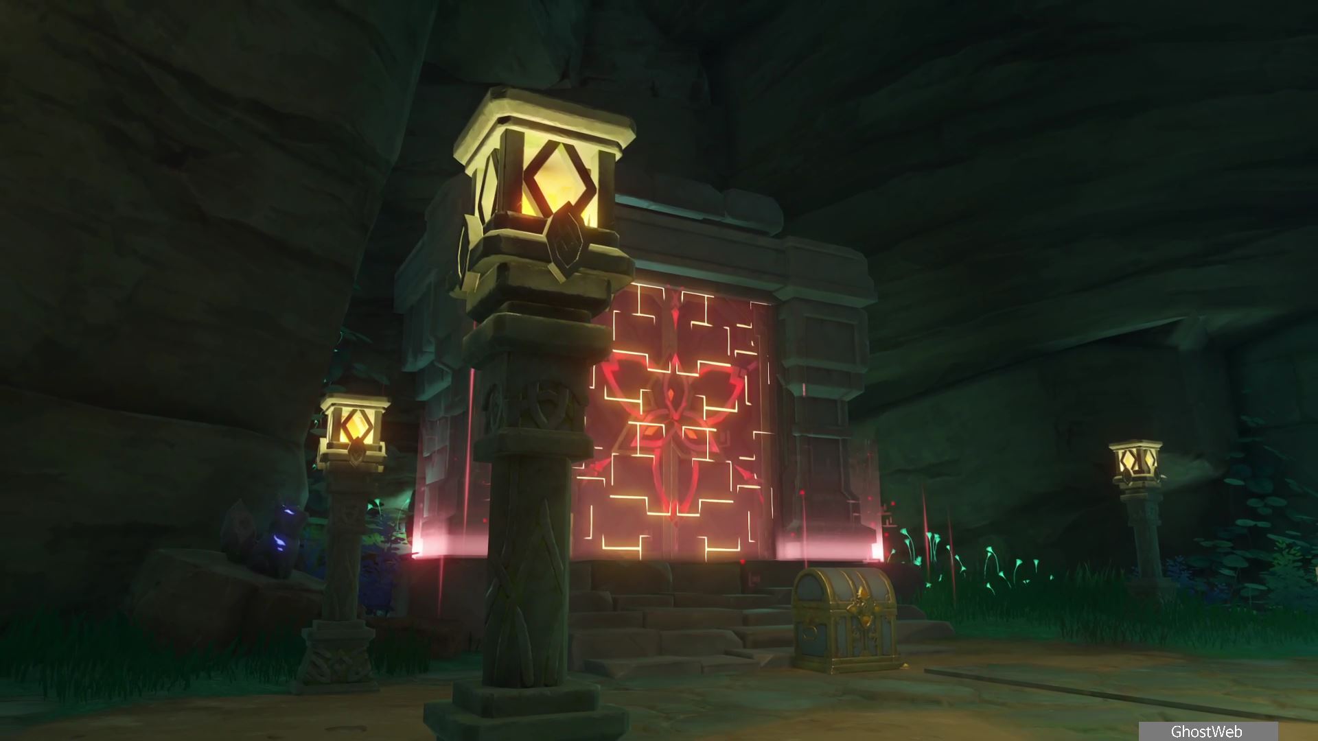 만약 진행 도중에 기믹의 박스 패턴이 꼬여서 해결하기 힘든 경우에는 다른 지역에서 좀 놀다가 다시 돌아오면 해당 기믹이 초기화되어 있으니 참고하시길 바라며, 기믹을 풀면 한 편에 보물상자가 나타나고 앞에 있던 물 웅덩이에 물이 빠져서 지하의 통로로 내려갈 수 있어요.