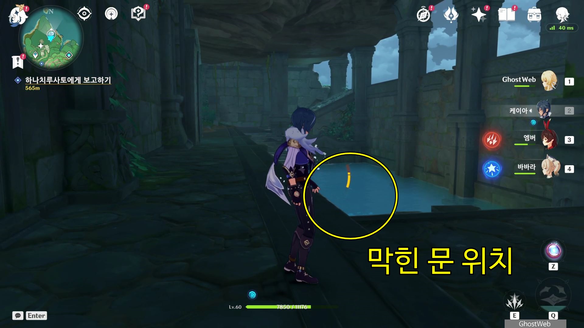 지하로 내려가면 결계가 보이는데 결계 기준 왼쪽 방에는 선령 1마리와 박스 기믹이 있고, 오른쪽 방에는 선령 1마리와 입구가 막혀있는 문이 있어요.