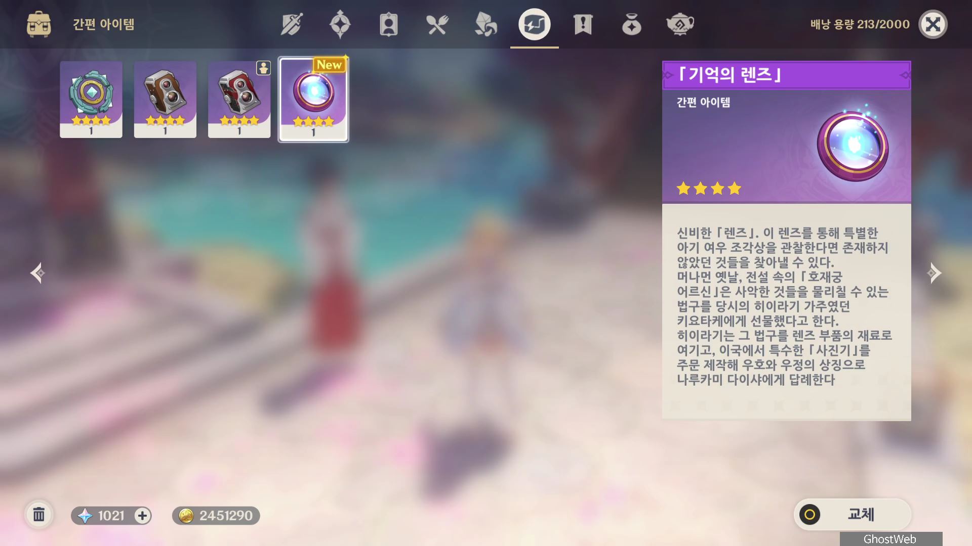 여기서 부터는 <기억의 렌즈>를 가지고 있고 사용법을 알고 있다는 전제로 글을 쓰도록 할게요.