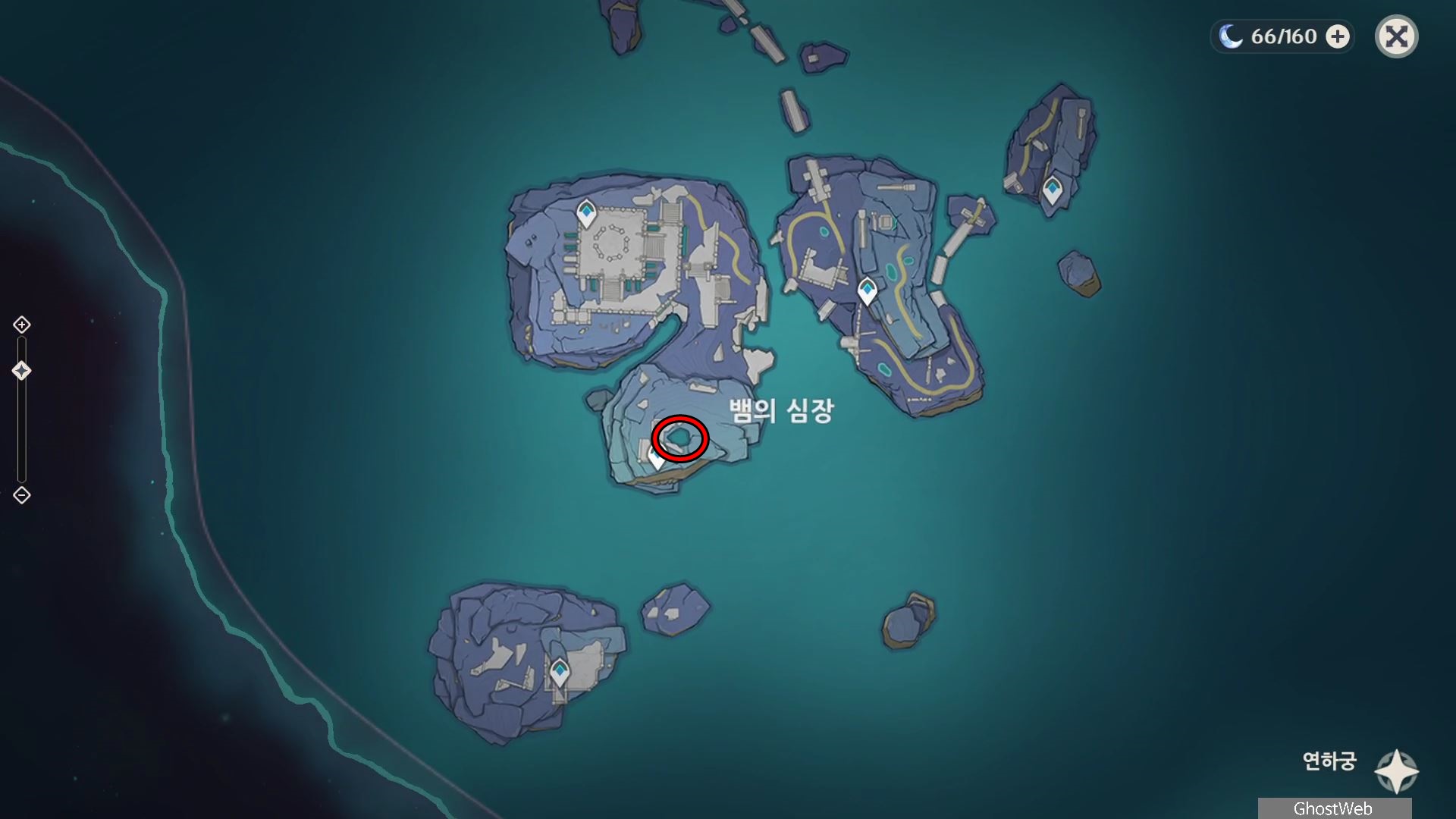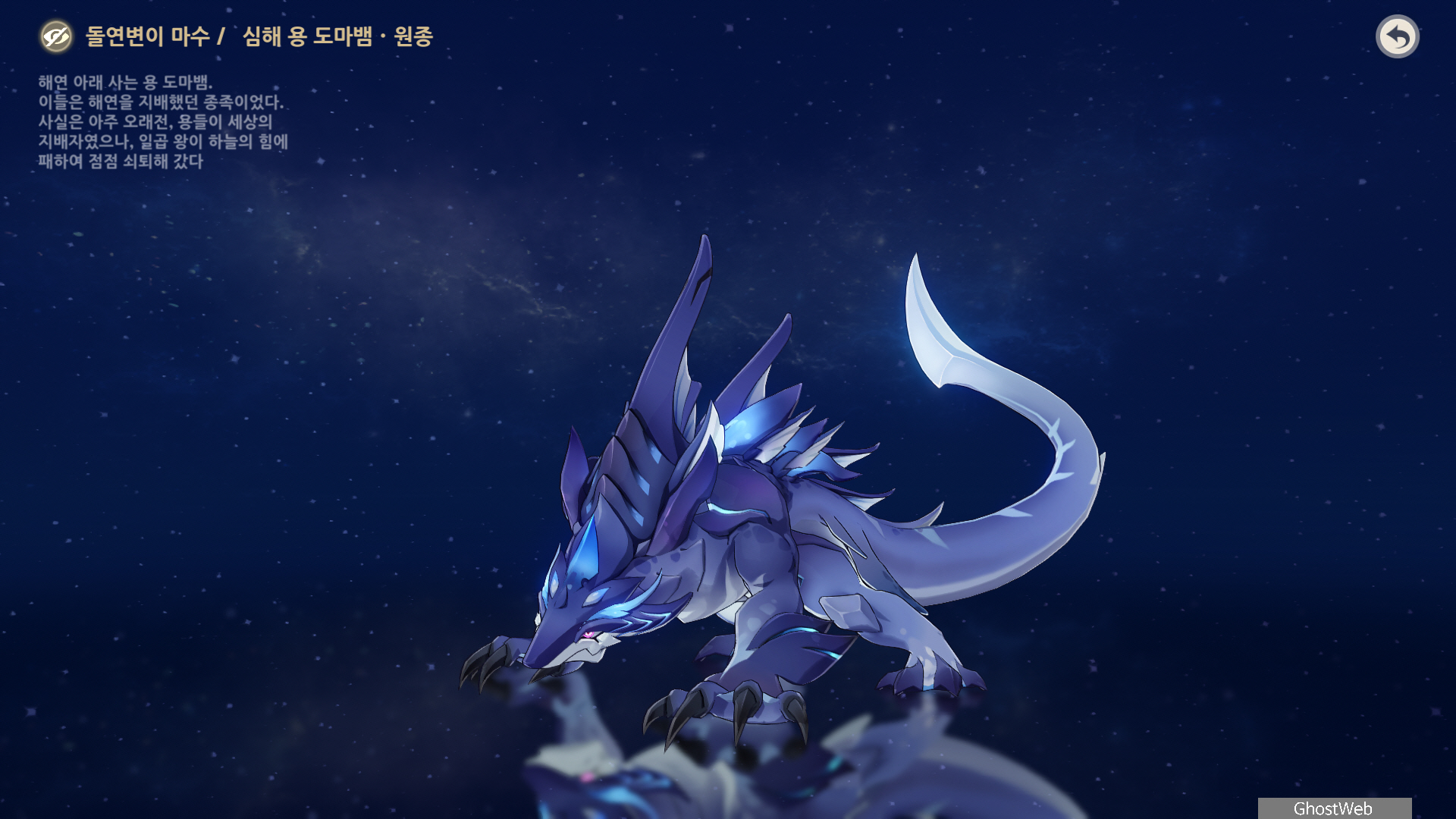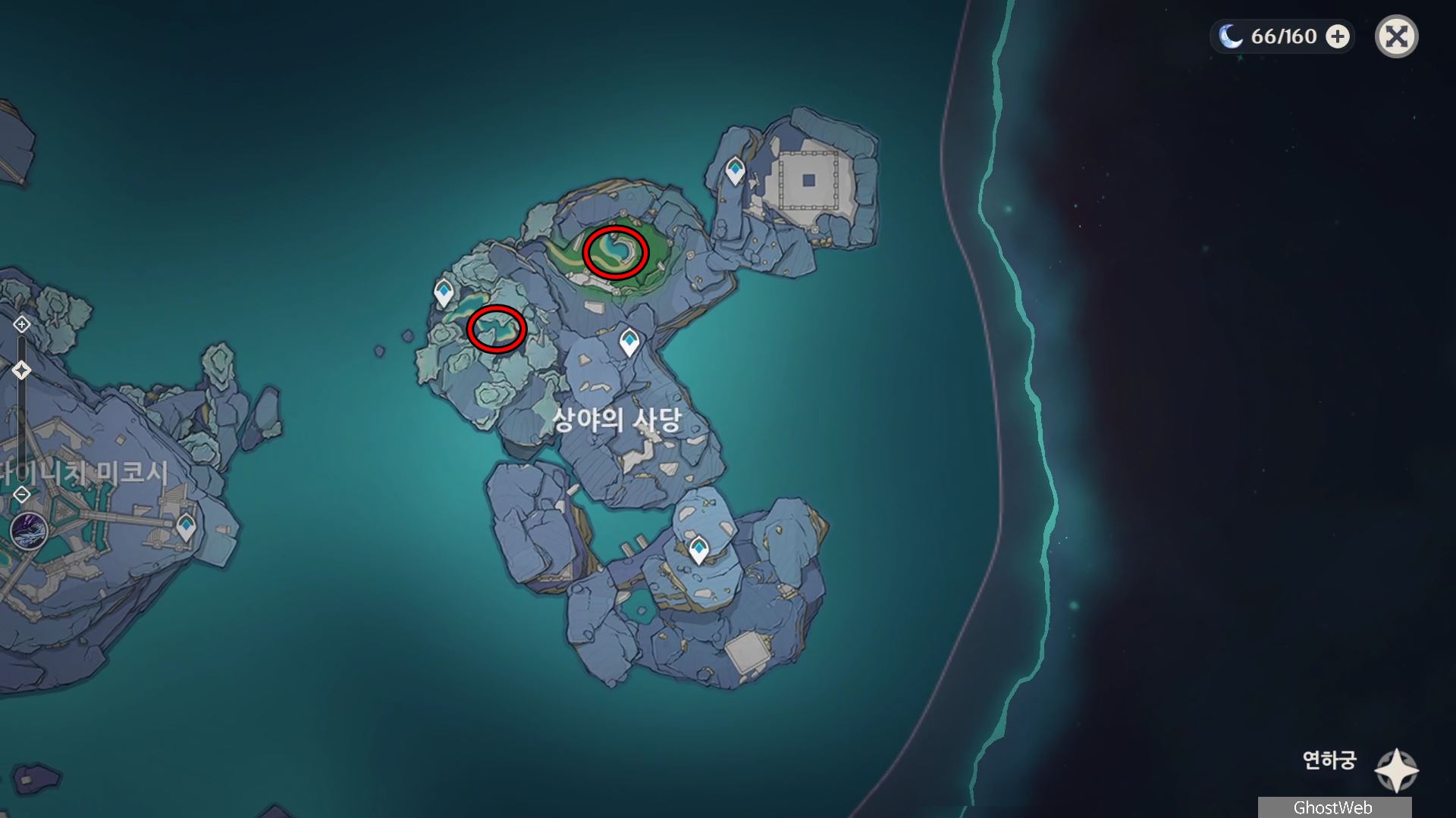 캐릭터 육성 소재인 약한/단단한/석화한 뼛조각을 얻을 수 있는 심해 용 도마뱀은 다음과 같이 연하궁의 연못 근처 등의 필드에서 만날 수 있어요.