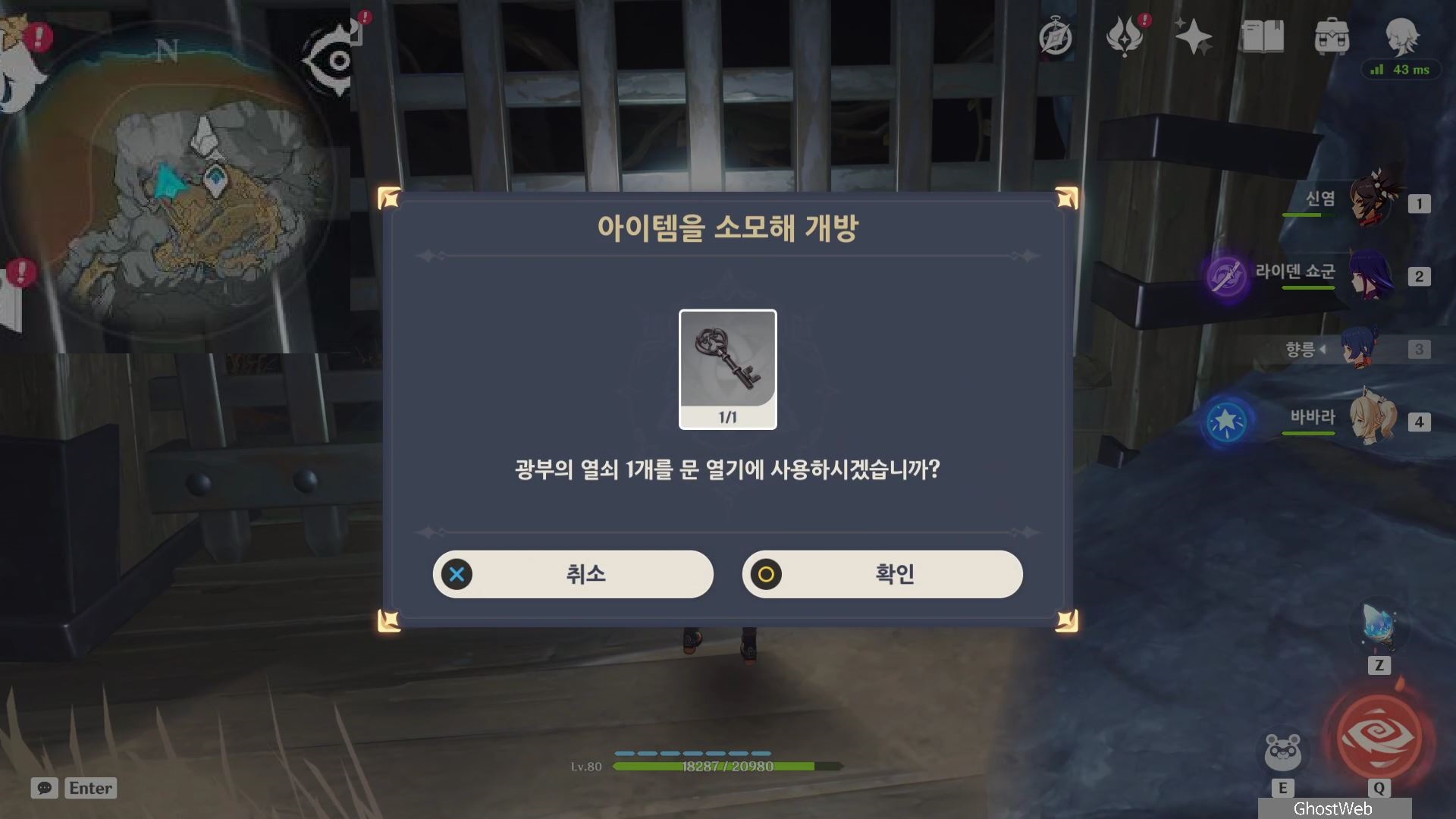 보물지도 조각을 획득하고 층암거연(지상)에 있는 보물 사냥꾼 야영지에서 철장 문 뒤에 방으로 이동