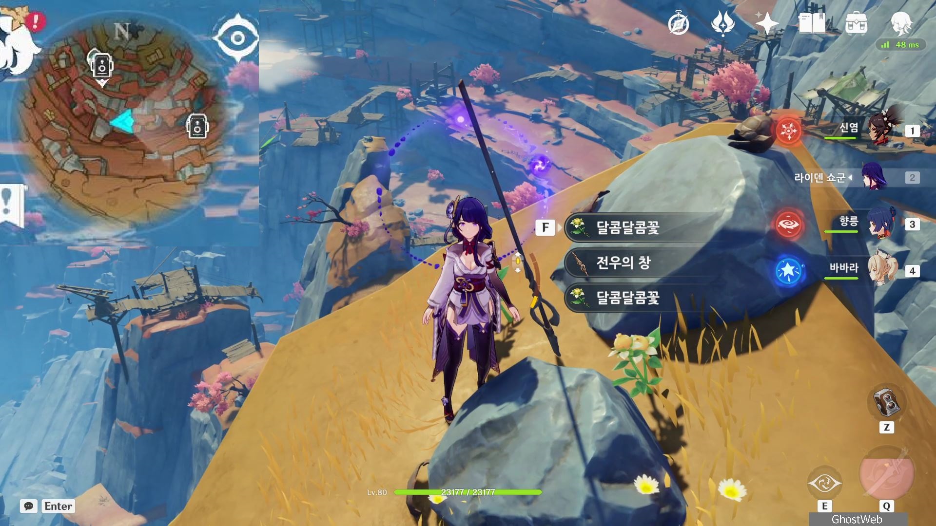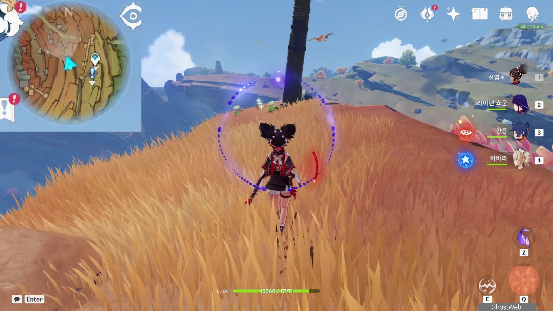 지도에서 거연입구 기준 3시 방향에 있는 <유리봉> 꼭대기에 있는 기둥 같은 구조물 아래에서 <비상의 깃털>을 파밍할 수 있어요.