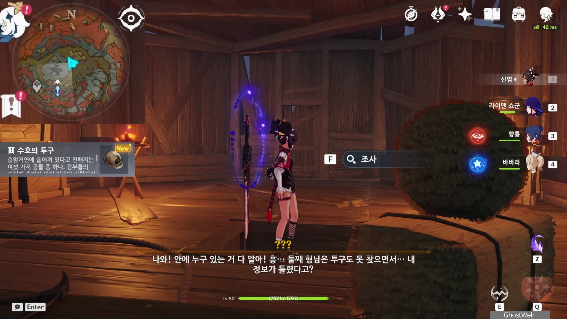 거연 입구 오른쪽 상단에 있는 집 안으로 들어가서 1층으로 내려가면 바닥에 짚단이 있는데요.