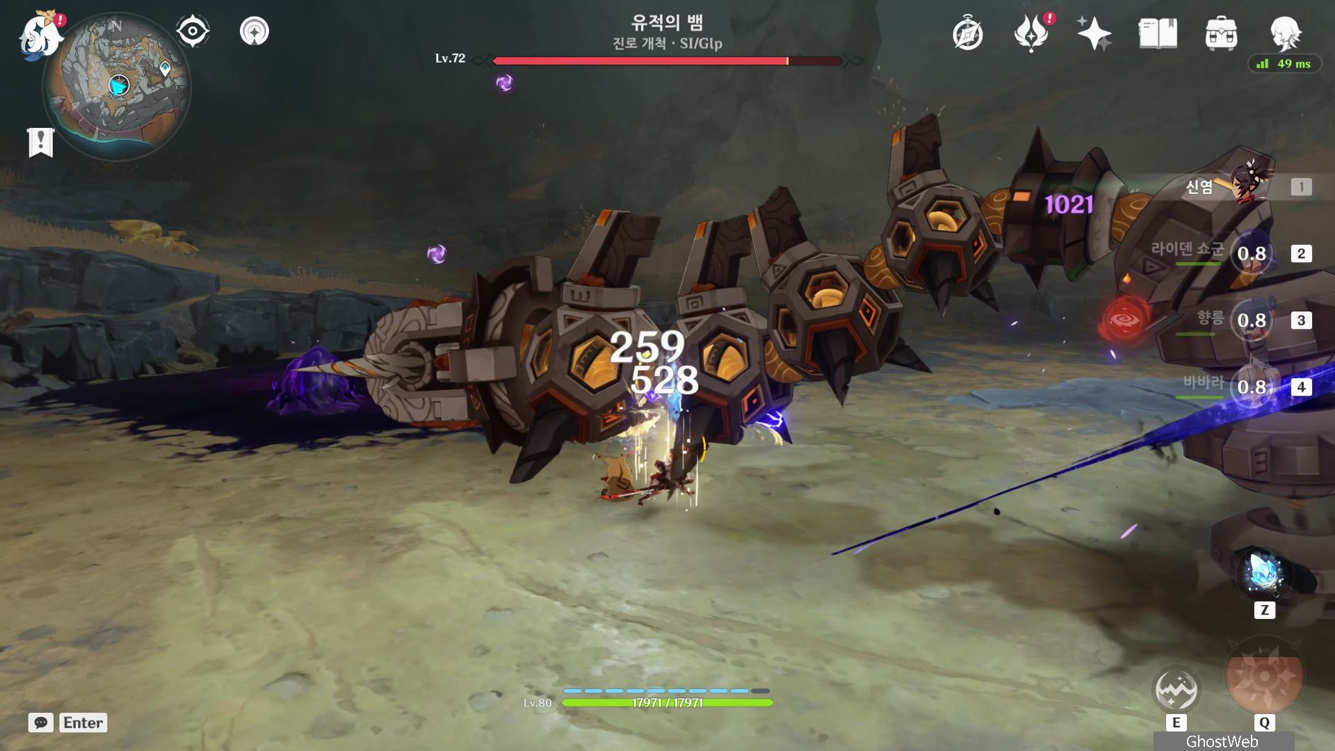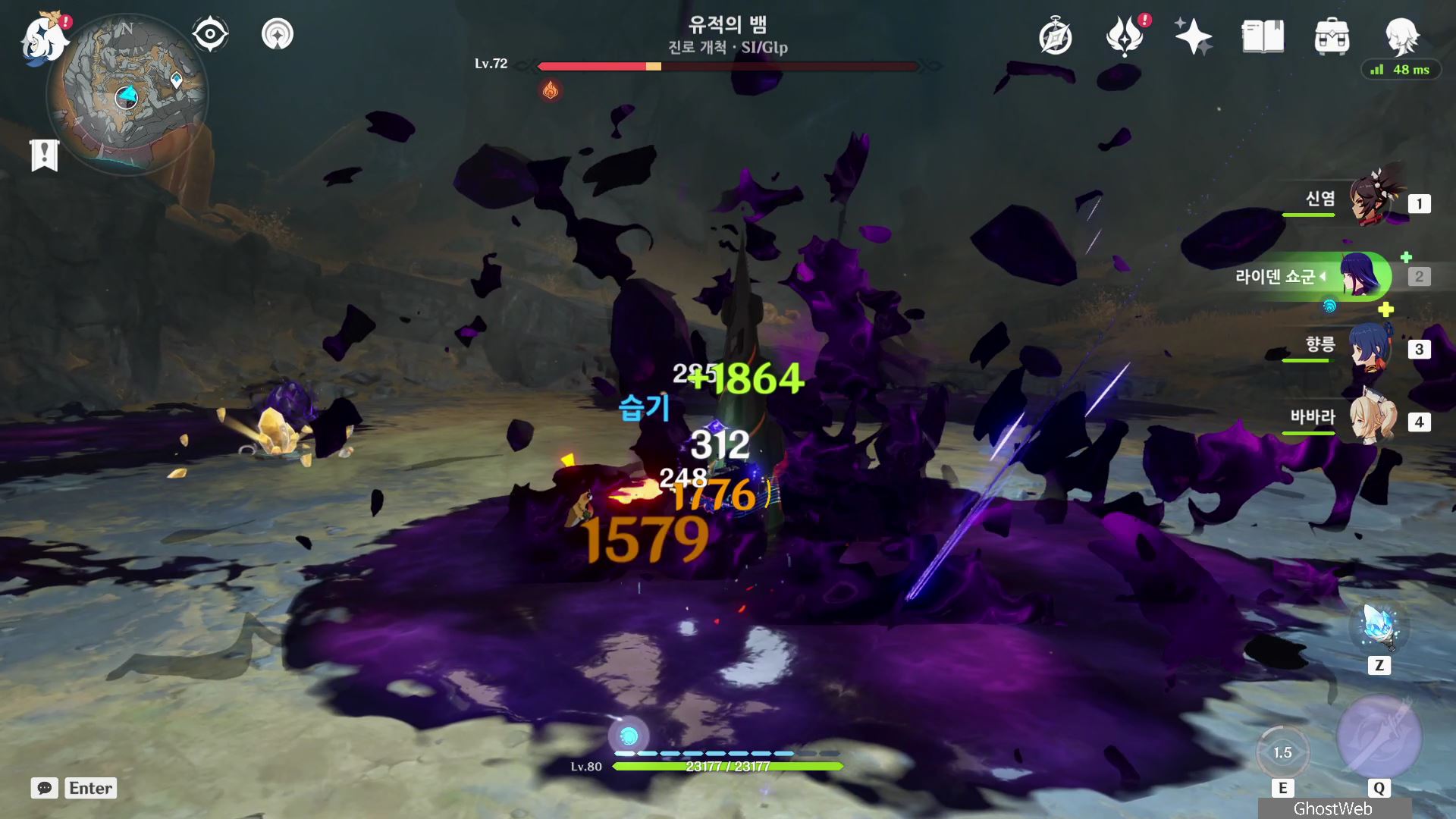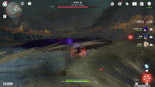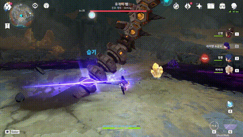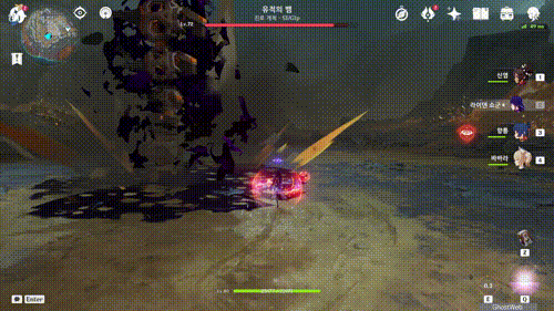 - 하늘로 쏫아 오르며 오염 진흙 퍼트리기 (오염 진흙은 유명석 촉매로 제거 가능)