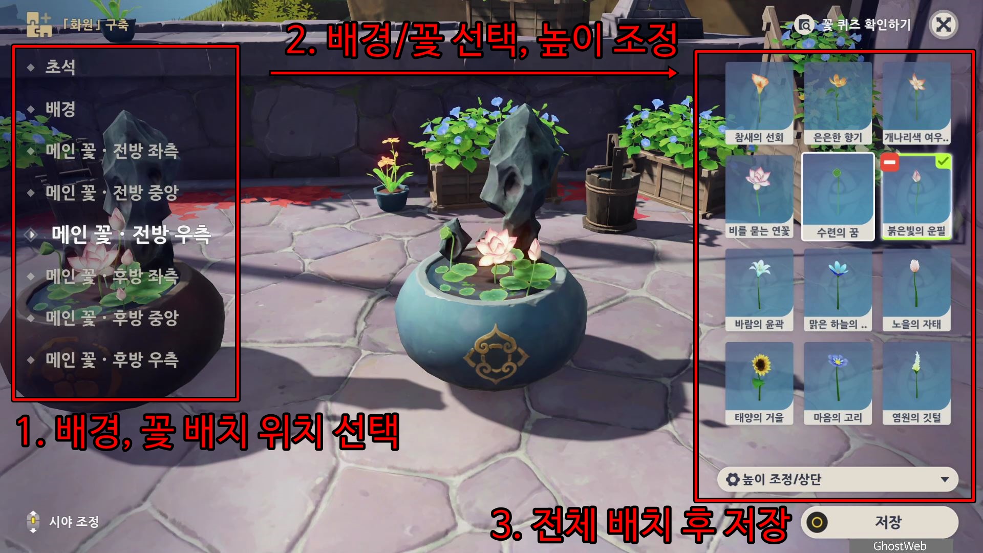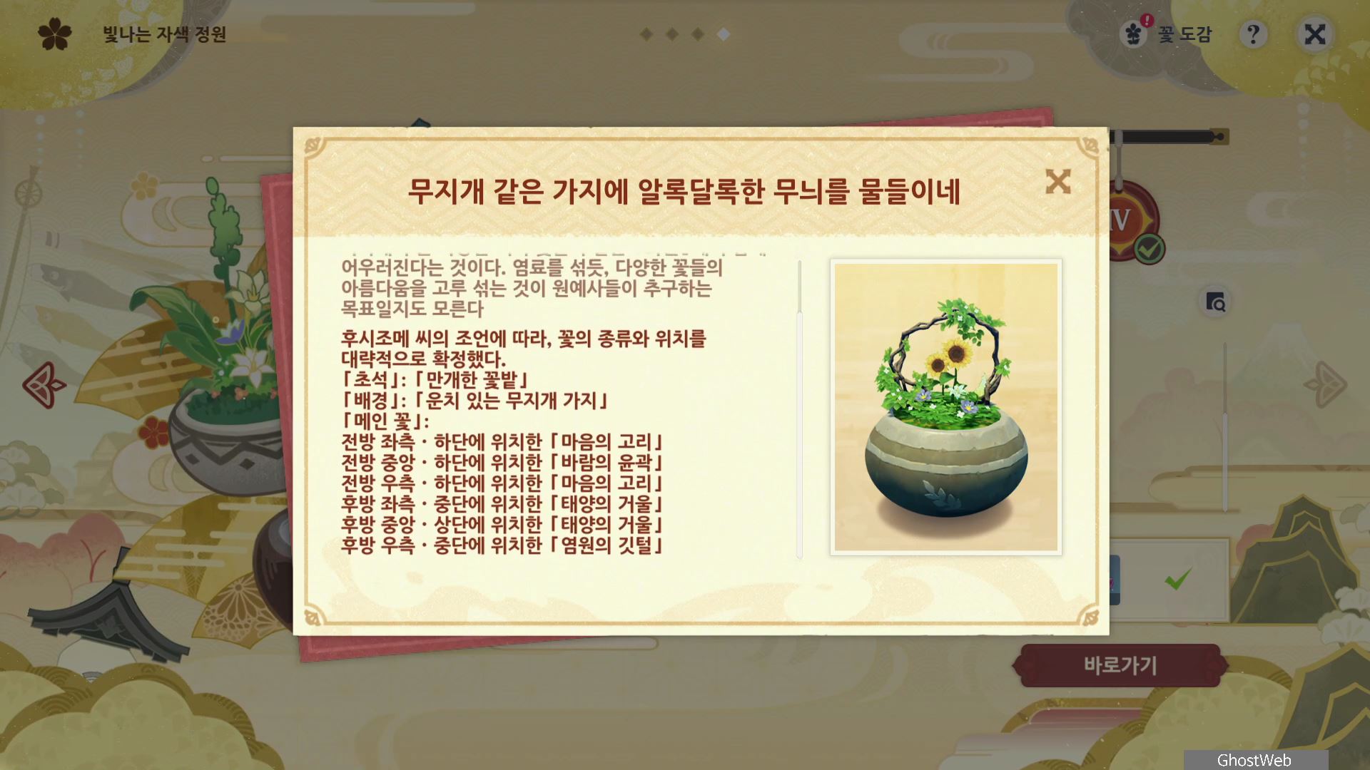 - NPC가 제시한 꽃꽃이 테마 대로 꽃과 장식을 배치하기 (4번)