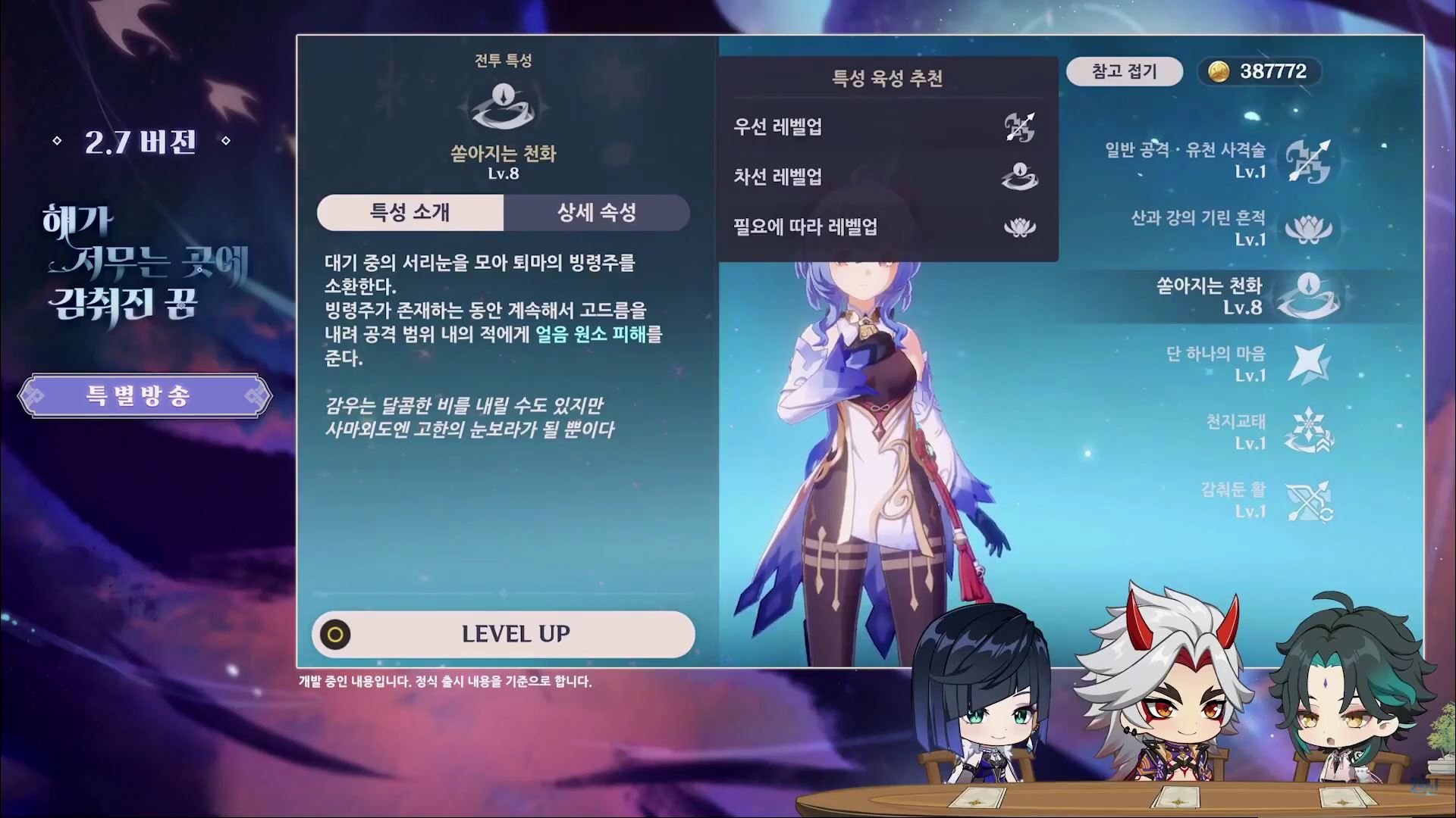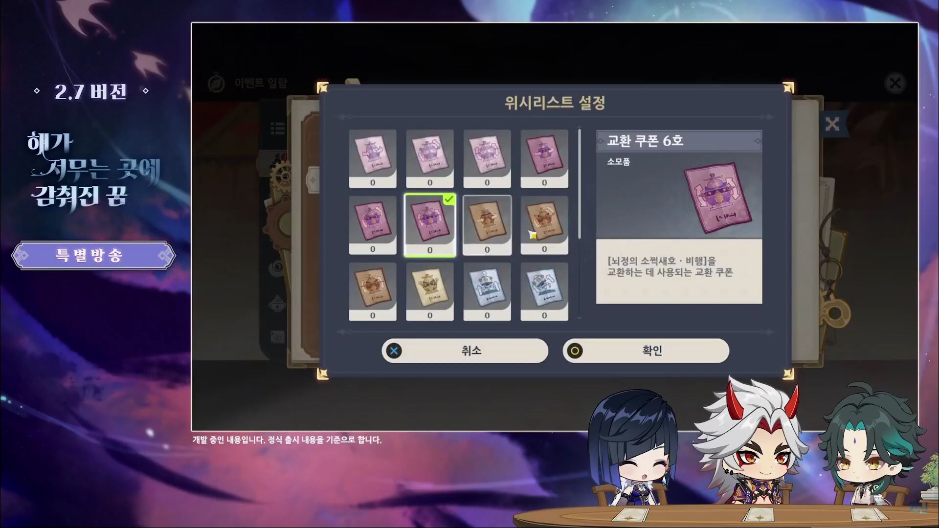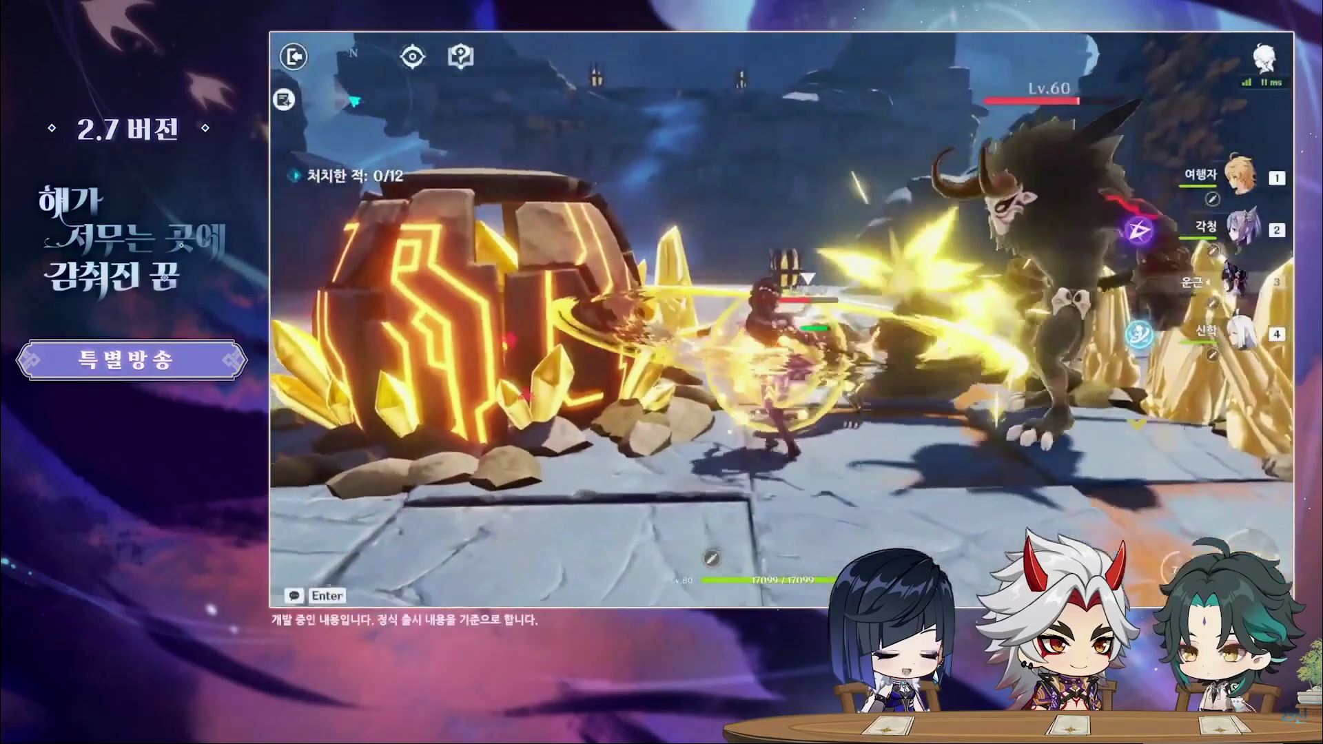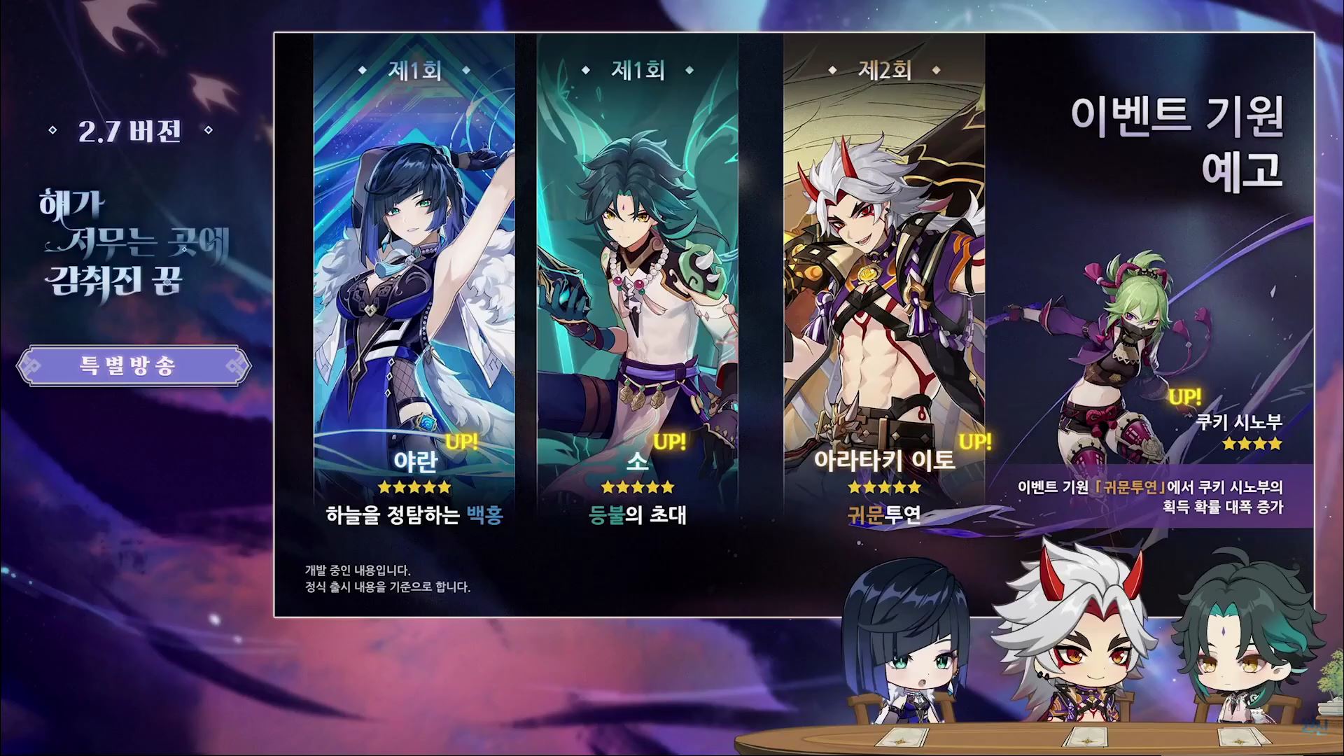 유튜브 원신 채널에서 2.7 버전 특별 방송을 정리한 것으로 듣고 정리한 거라, 오타 또는 2.7 업데이트 시 내용이 수정되어 있을 수도 있어요.
