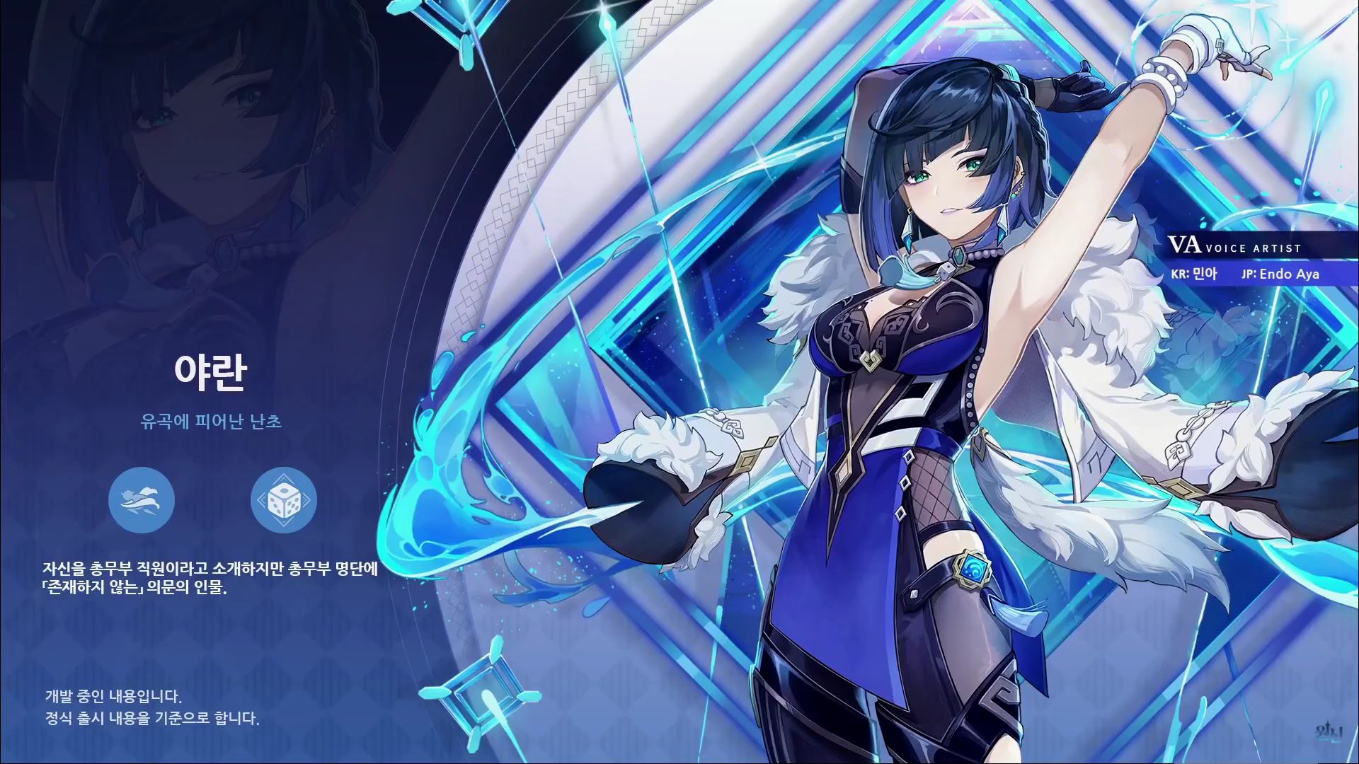 1. 야란 (5성, 물 원소, 활, 하늘을 정탐하는 백홍)