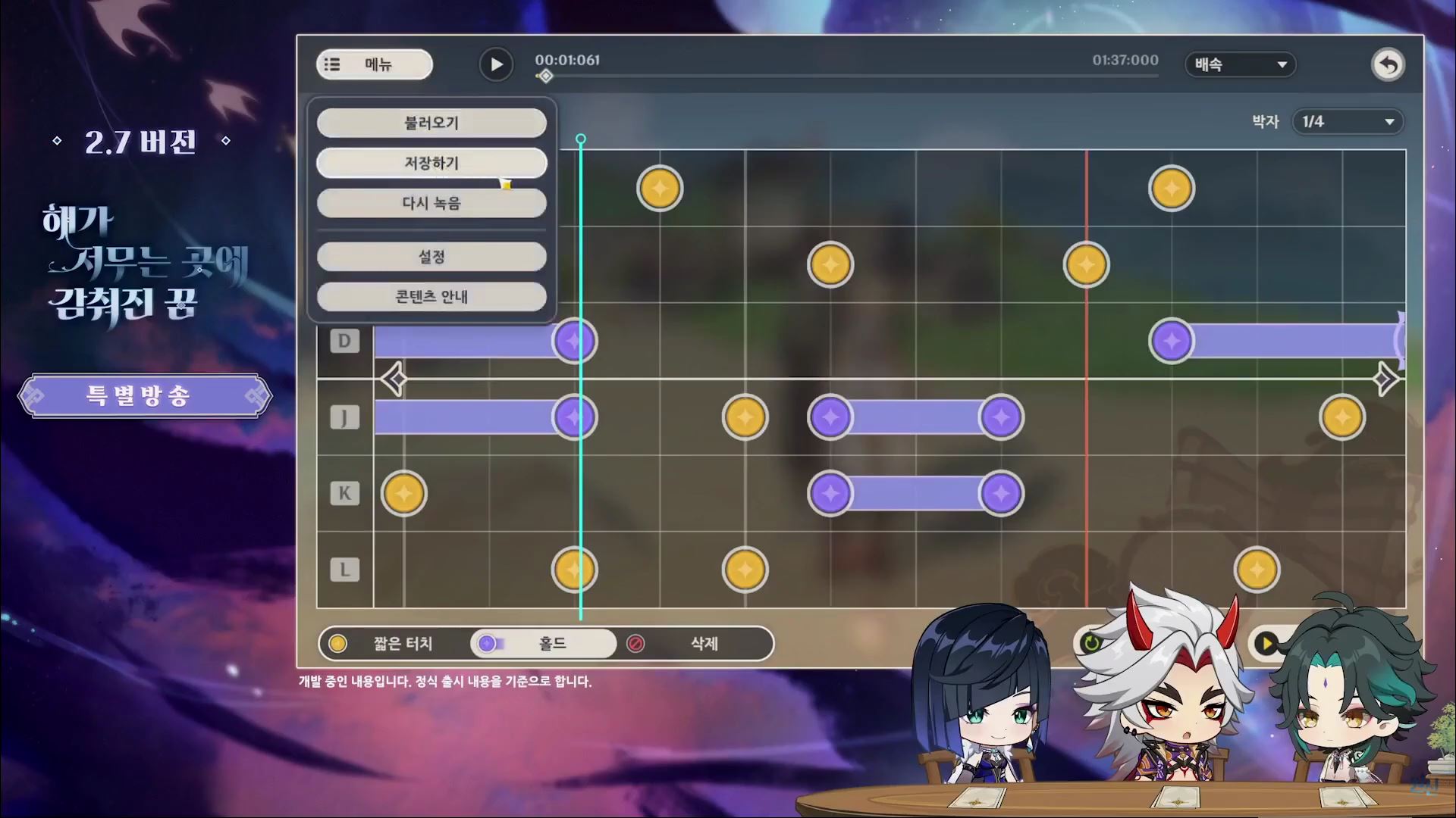 - 이벤트 연주곡을 해금하면 해당 곡의 음표의 위치를 편집하여 친구에게 공유 가능