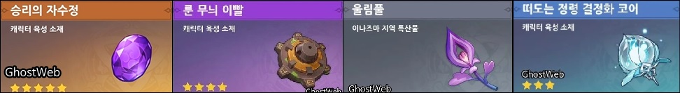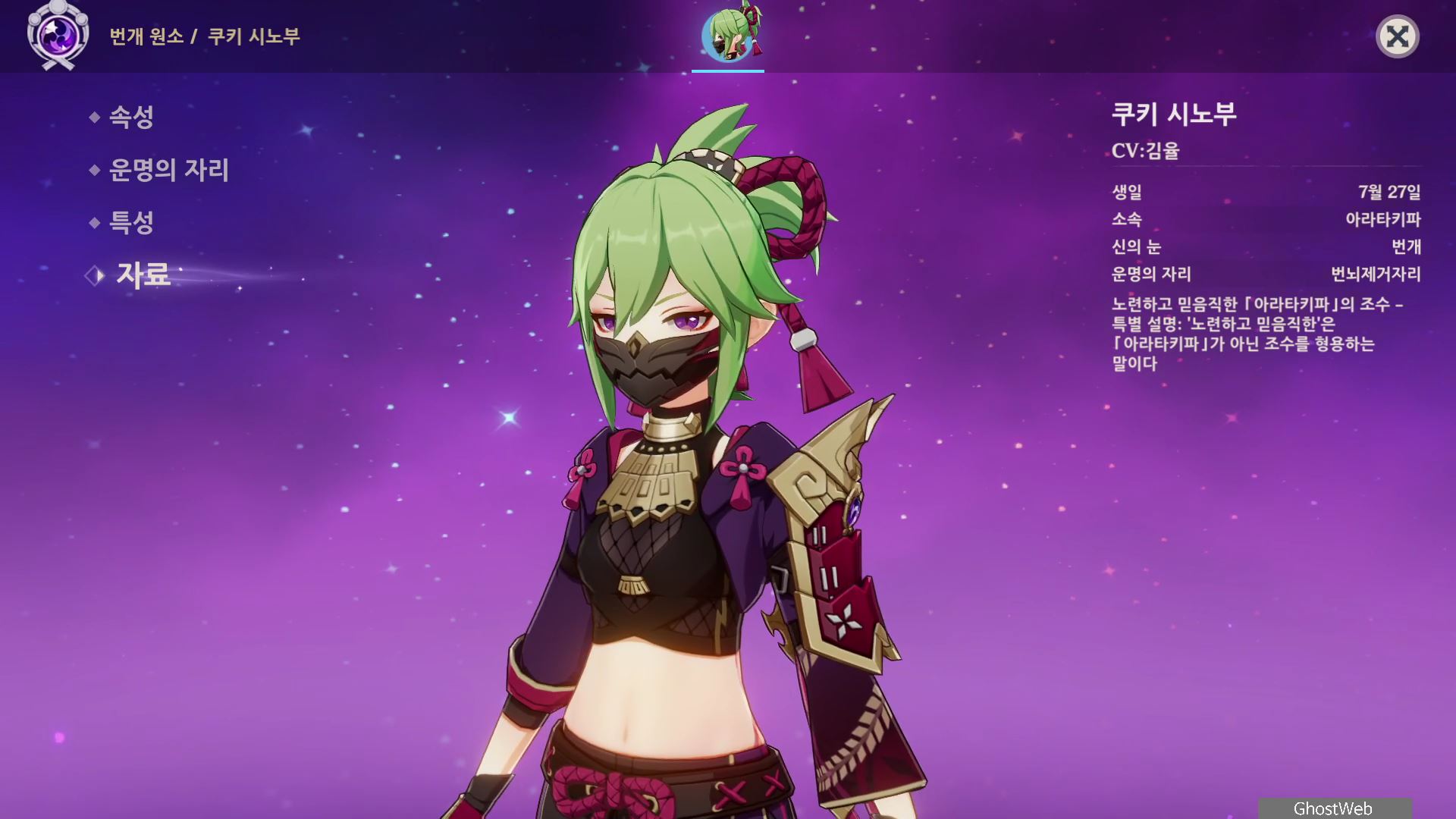 | [원신] 타이나리 (풀 원소, 활, 스킬, 캐릭터/특성 육성 소재) (0) | 2022.08.26 |