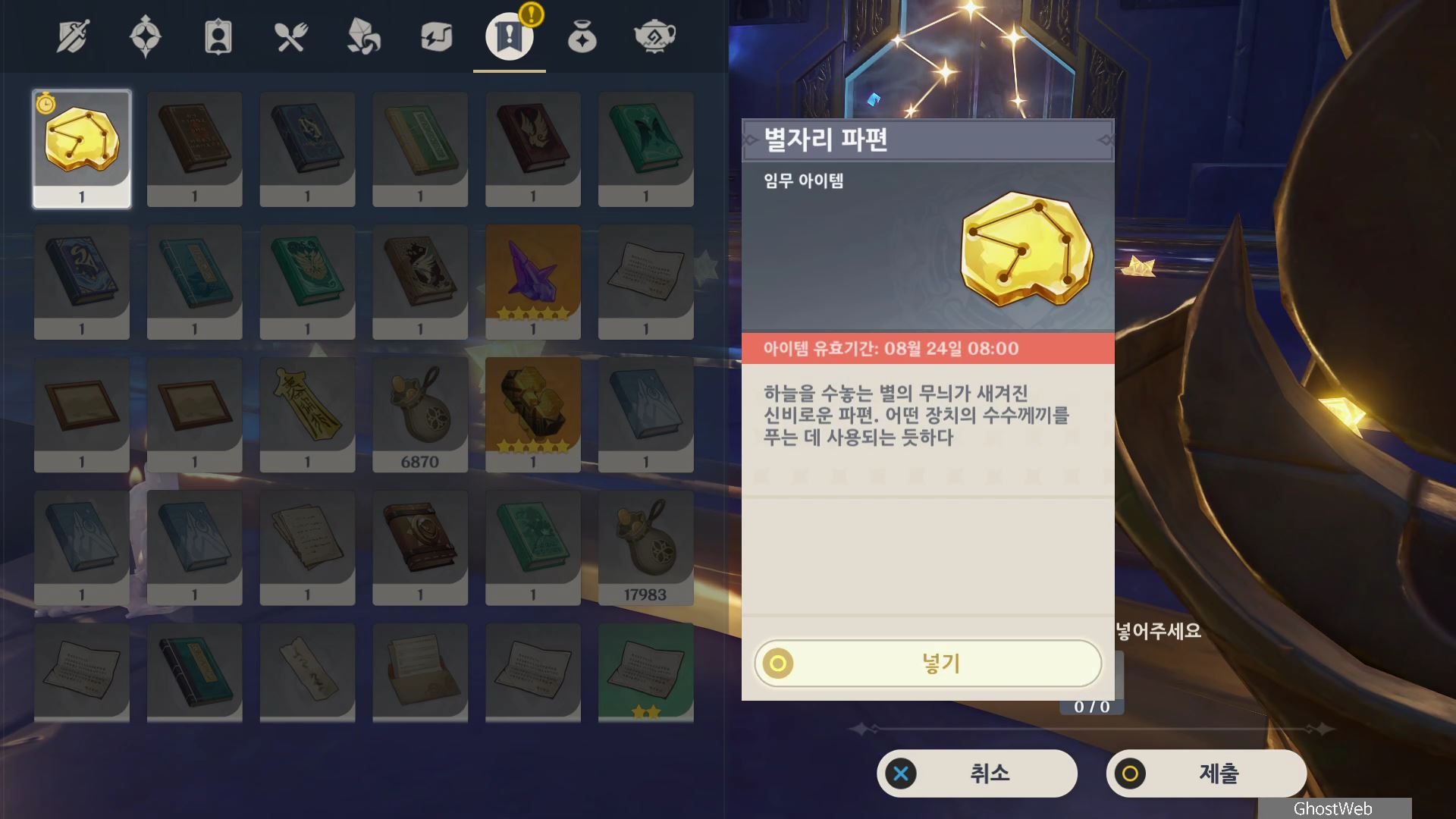 (전체 별 자리 기믹은 정리는 아직 푸는 중이라 따로 정리하도록 할게요.)