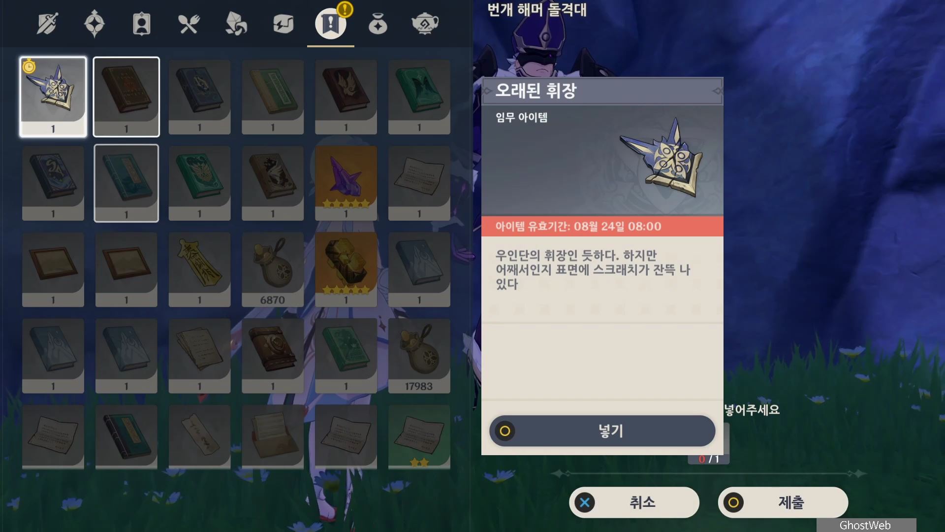 흩어진 과거의 조각 월드 임무 진행에는 은도금 회중 시계, 오래된 휘장, 잘못된 위치의 소라 1~3이 필요하기 때문에 진행 전/중에 해당 아이템을 얻기 위해 필드 탐험, 스토리 진행을 해야할 수 있어요.
