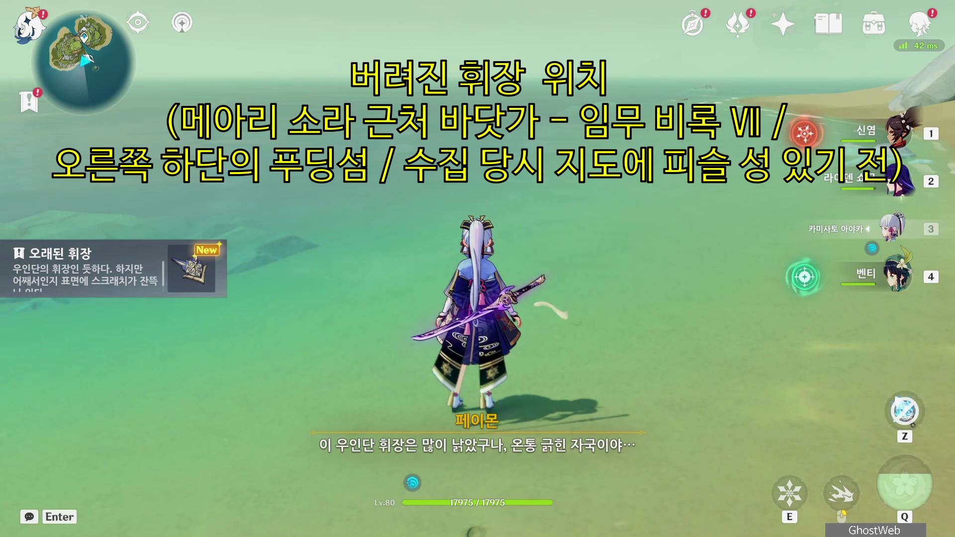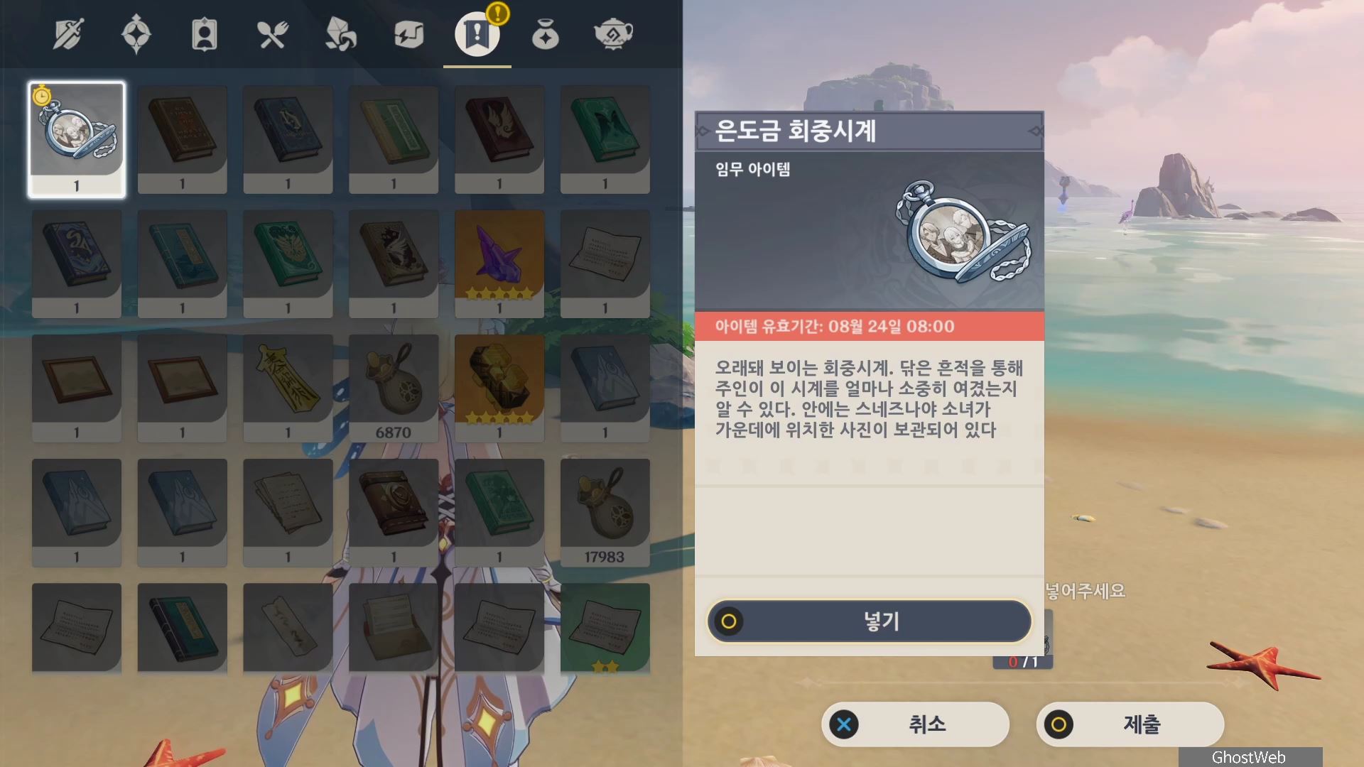 - 금사과 제도 중앙에서 6~7시 방향에 있는 위태위태 섬 왼쪽 산 꼭대기에 있는 <중앙 야영지의 영상 Ⅰ>을 본 후 획득 가능