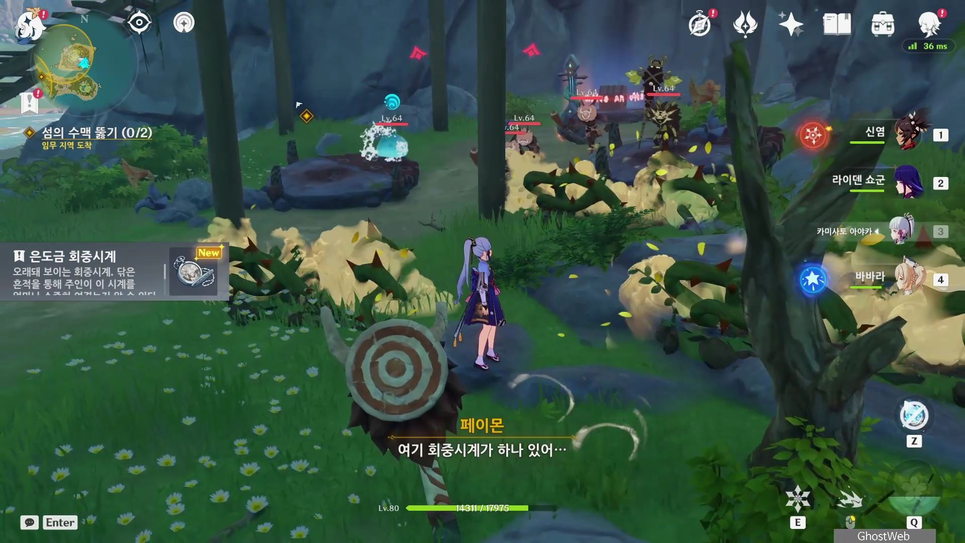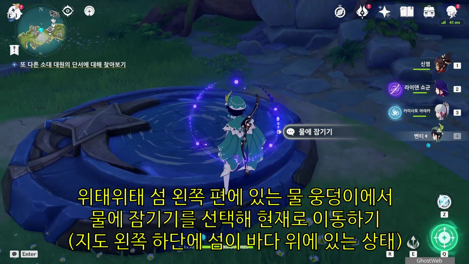 [원신] 2022 금사과 제도 너덜너덜 섬에 지하에 있는 메아리 소라 얻는방법 (영상 소라, 중앙 야영