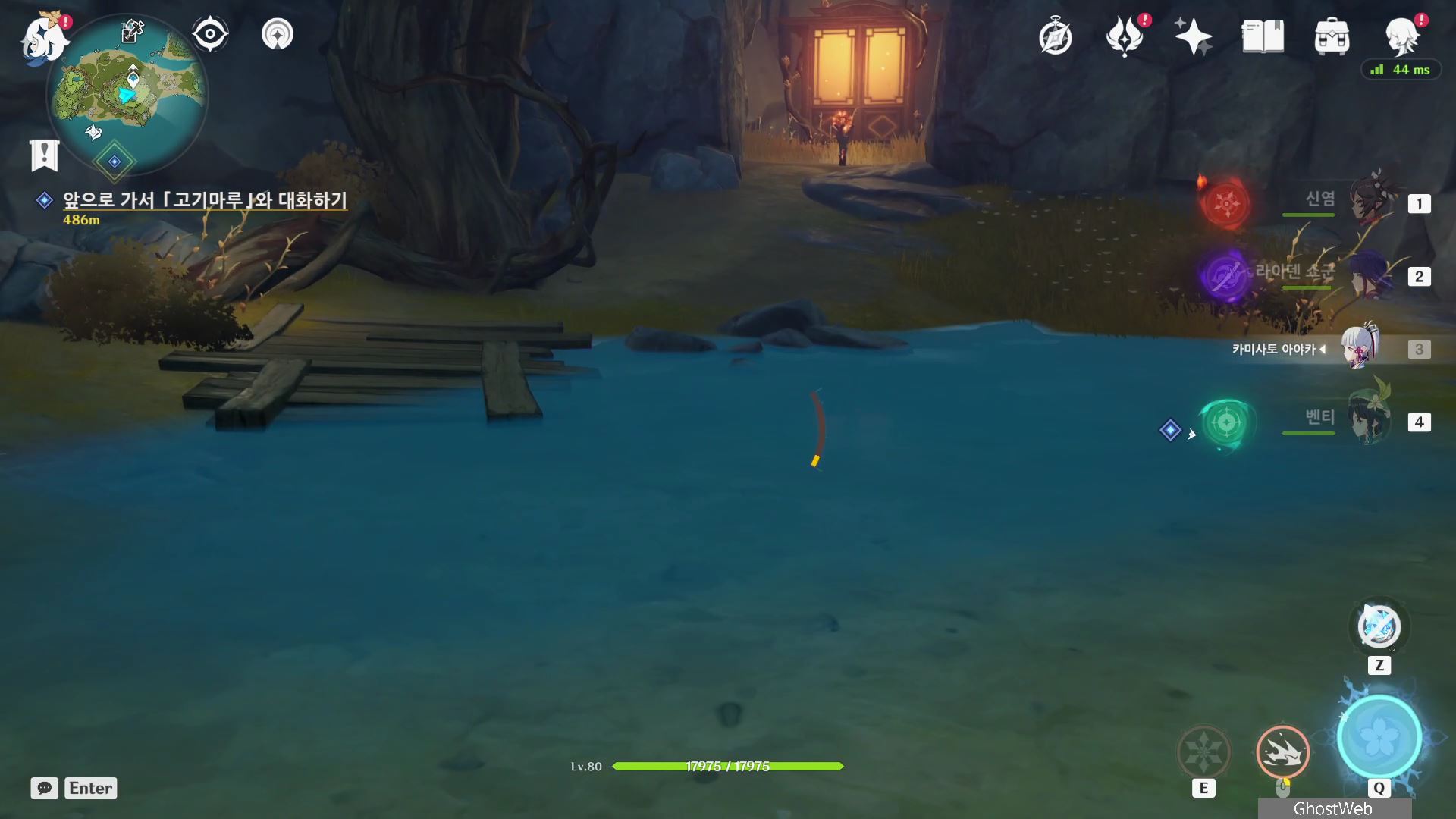 [원신] 2022 금사과 제도 너덜너덜 섬에 지하에 있는 메아리 소라 얻는방법 (영상 소라, 중앙 야영