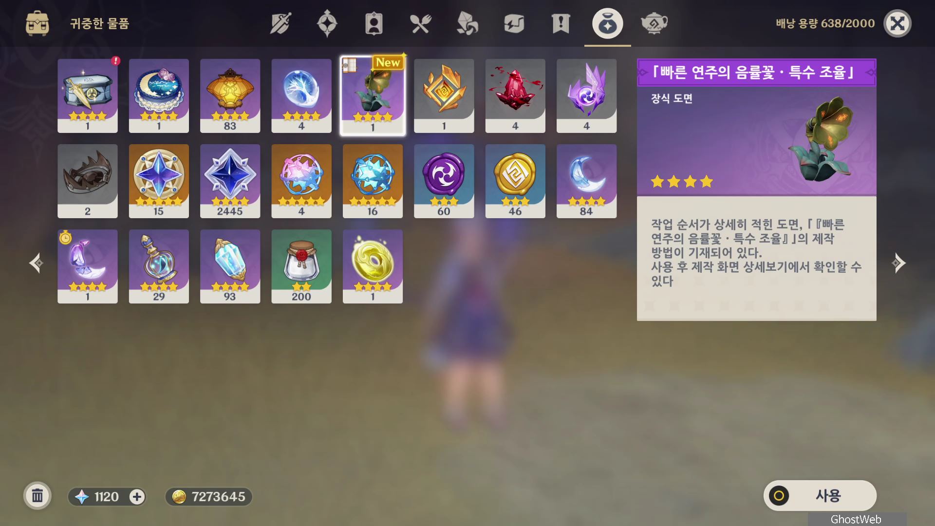 중앙 판에서 보물상자 방향으로 끝 쪽에 있는 악기의 방향을 안쪽으로 돌린 후 악기를 연주하면 봉인이 풀리며 보물 상자 3개를 얻을 수 있는데, 여기서 빠른 연주의 음률꽃 장식 도면을 얻을 수 있어요.