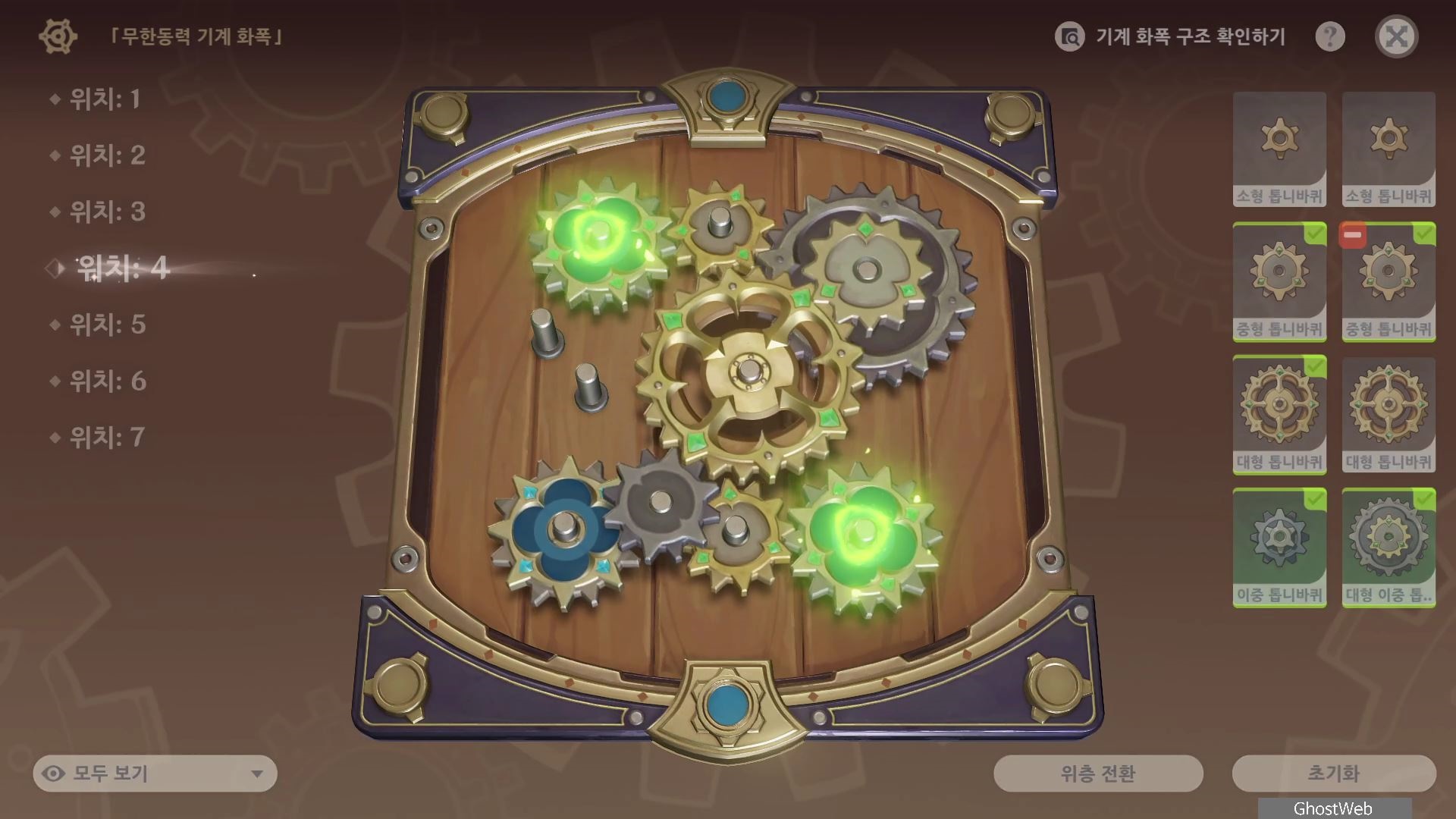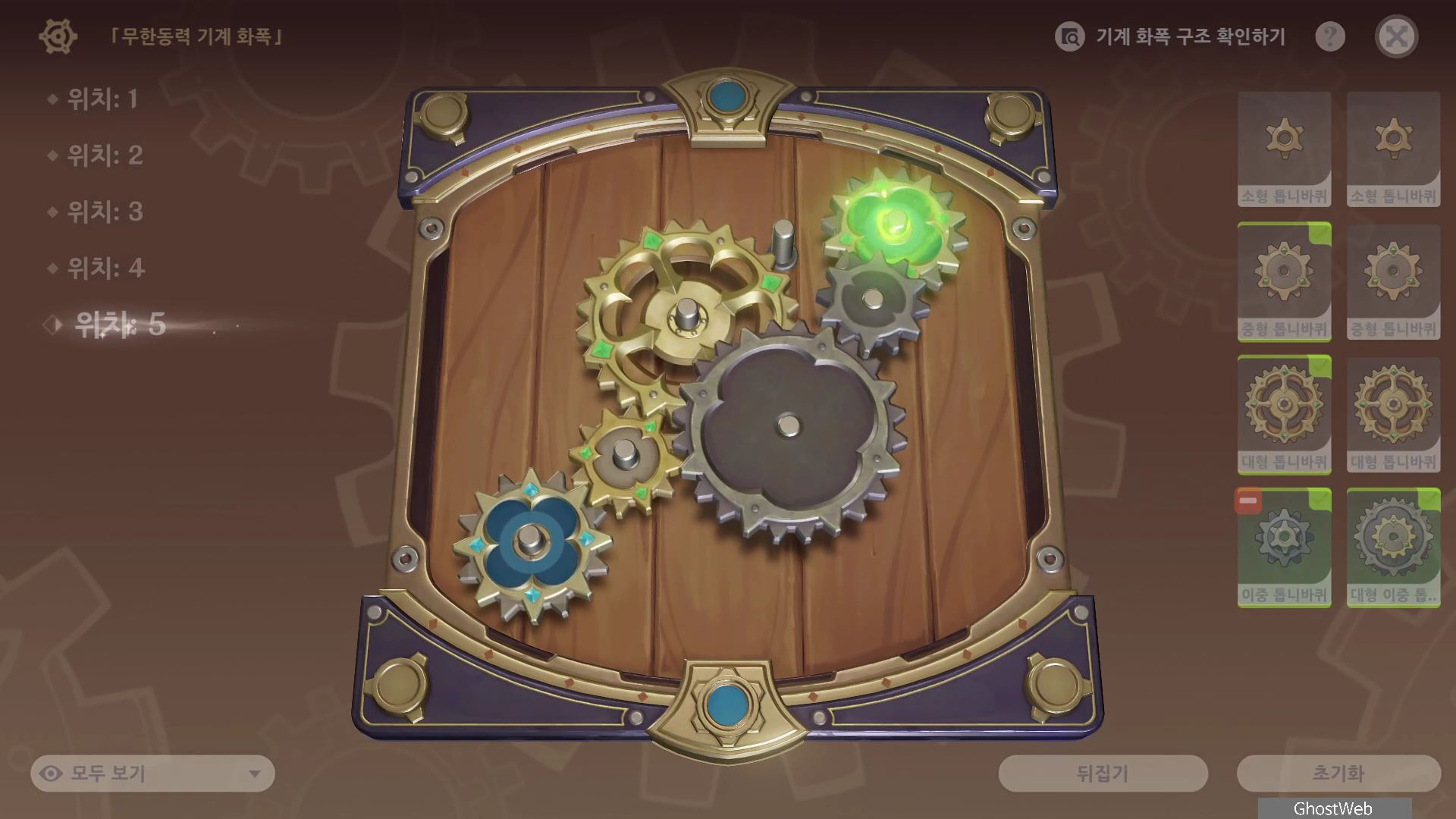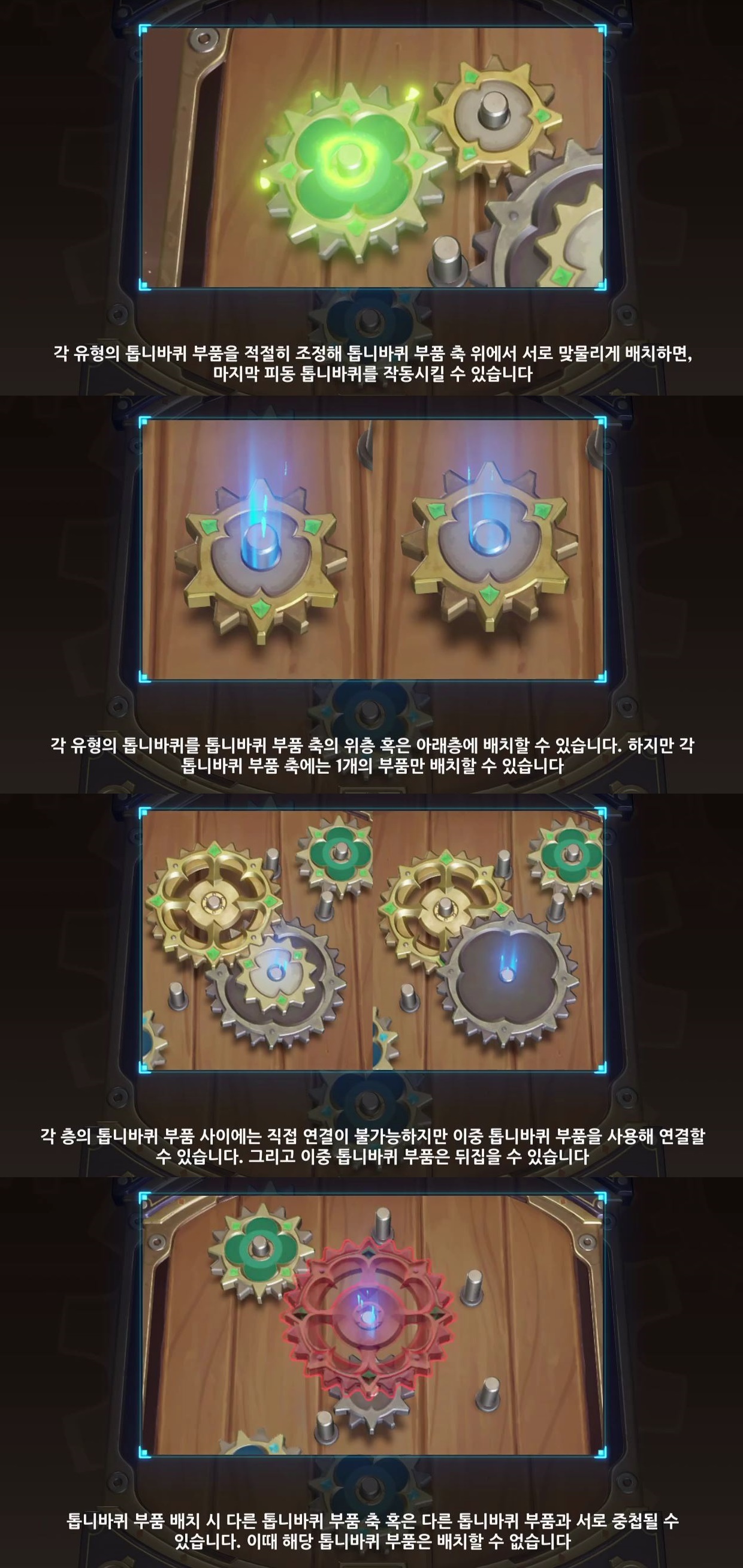 기계 화폭 부품 복원은 톱니 바퀴를 배치하여 서로 맞물리게 배치하여 마지막 파동 톱니바퀴를 돌아가게 만들면 돼요.