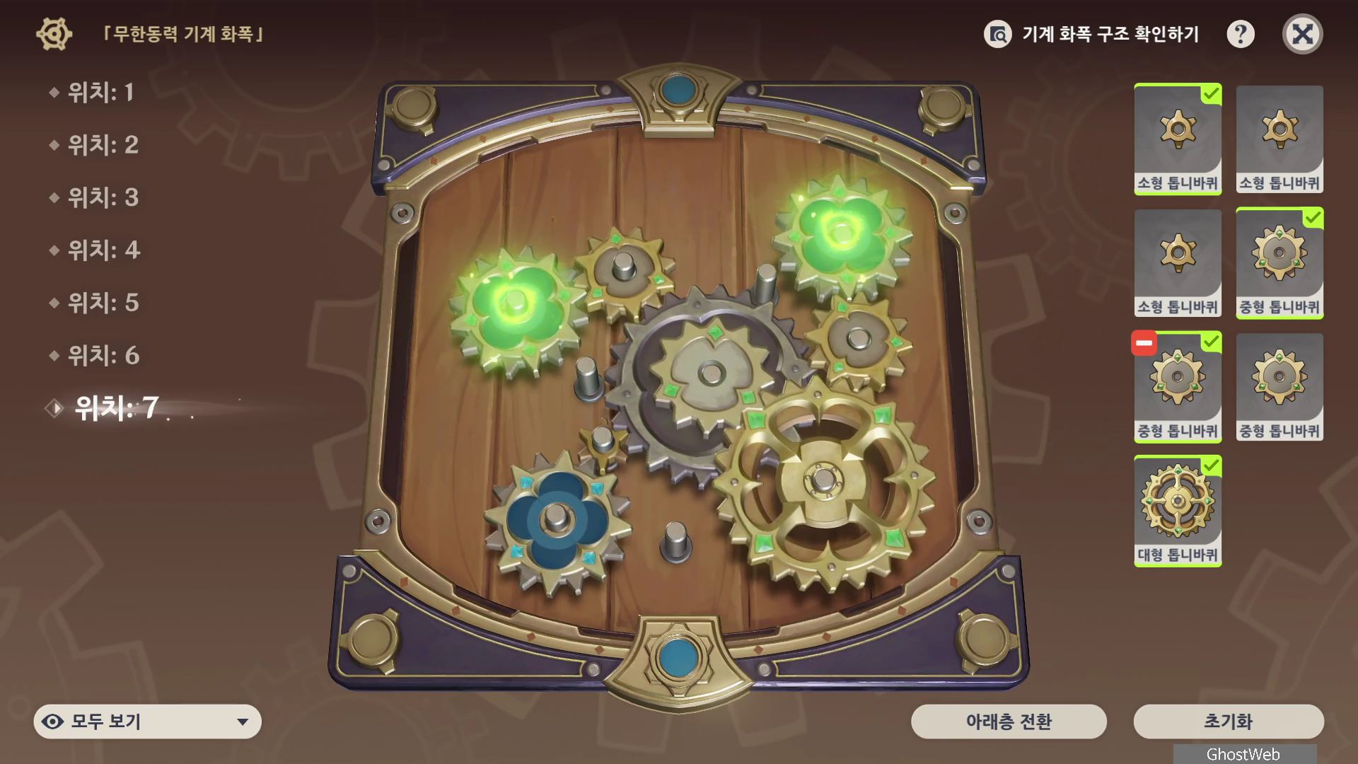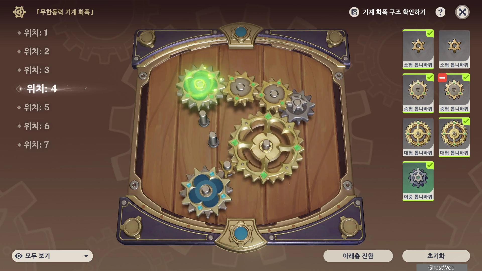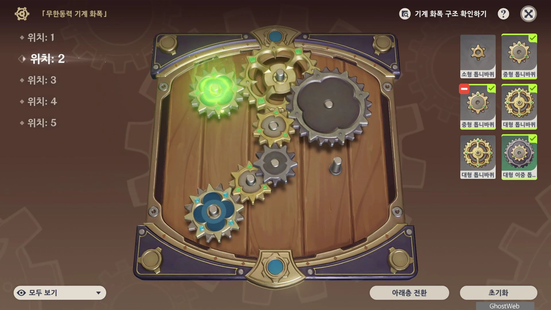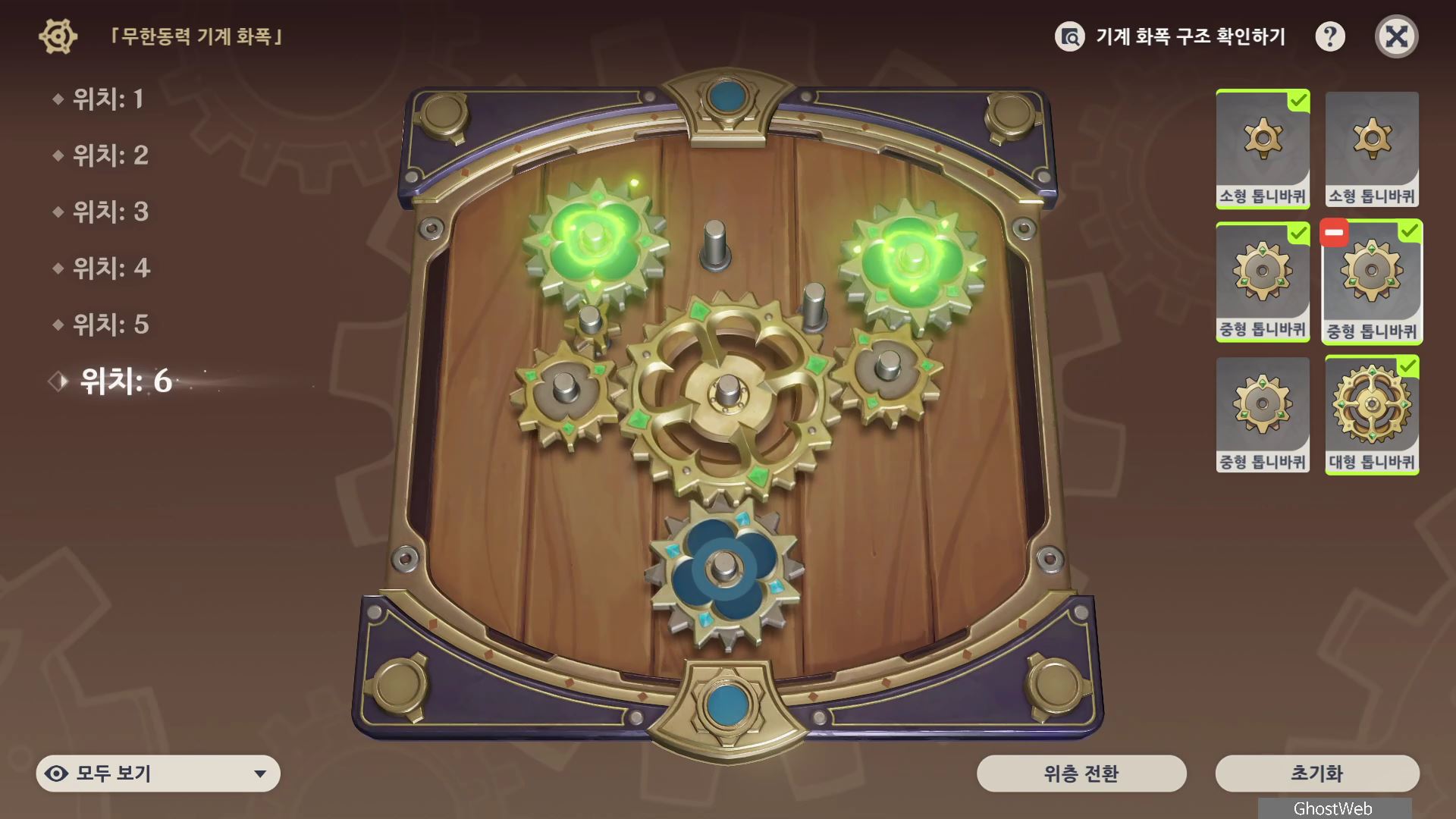 기계 화폭 부품 복원은 톱니 바퀴를 배치하여 서로 맞물리게 배치하여 마지막 파동 톱니바퀴를 돌아가게 만들면 돼요.