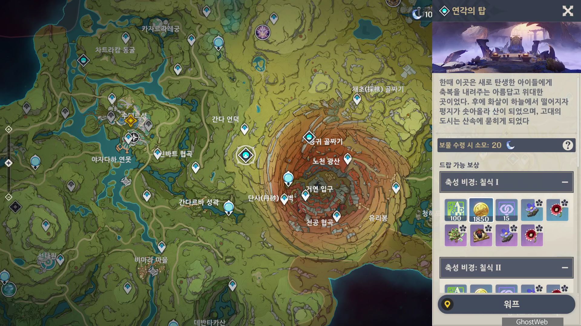 | [원신] 유정의 탑 (수메르, 연무 비경, 무기 돌파 소재, 숲의 이슬을 닮은 부적, 오아시스 화원, 태양 같은 권위) (0) | 2022.08.25 |