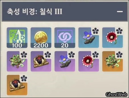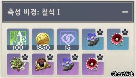 모험 레벨 45 미만이신 분들은 성유물보다 캐릭터 육성 소재를 획득하는 것을 추천드리며, 5성 성유물은 칠식 3 (추천 레벨 80)부터 얻을 수 있어요.