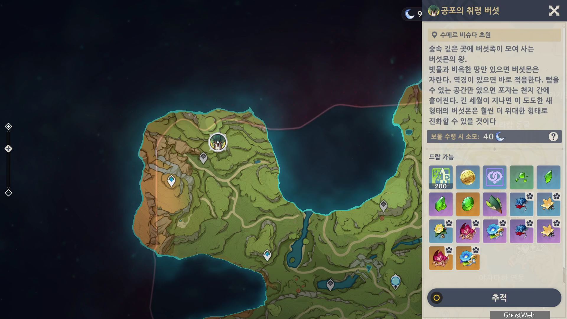 이번에는 타이나리, 콜레이의 육성 소재를 얻을 수 있는 공포의 취령 버섯(추앙받는 버섯족의 왕)에 위치, 공격 패턴을 정리해보도록 할게요.