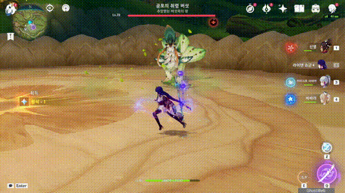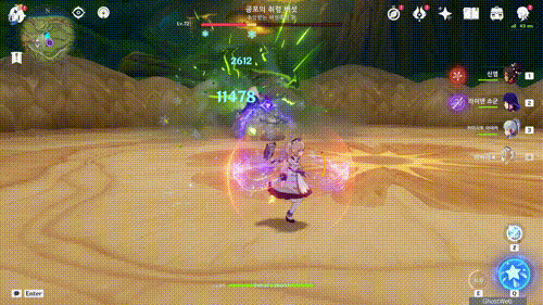 1. 번개 원소 공격을 받아 격화 반응이 일어날 시 활력도 누적되며, 최대치까지 누적 시 활력 상태가 되어 공격이 강해짐.