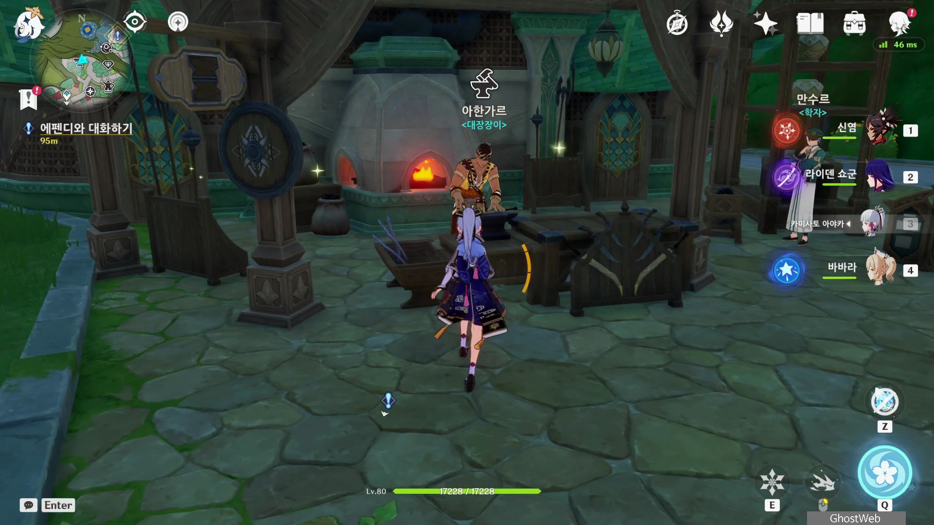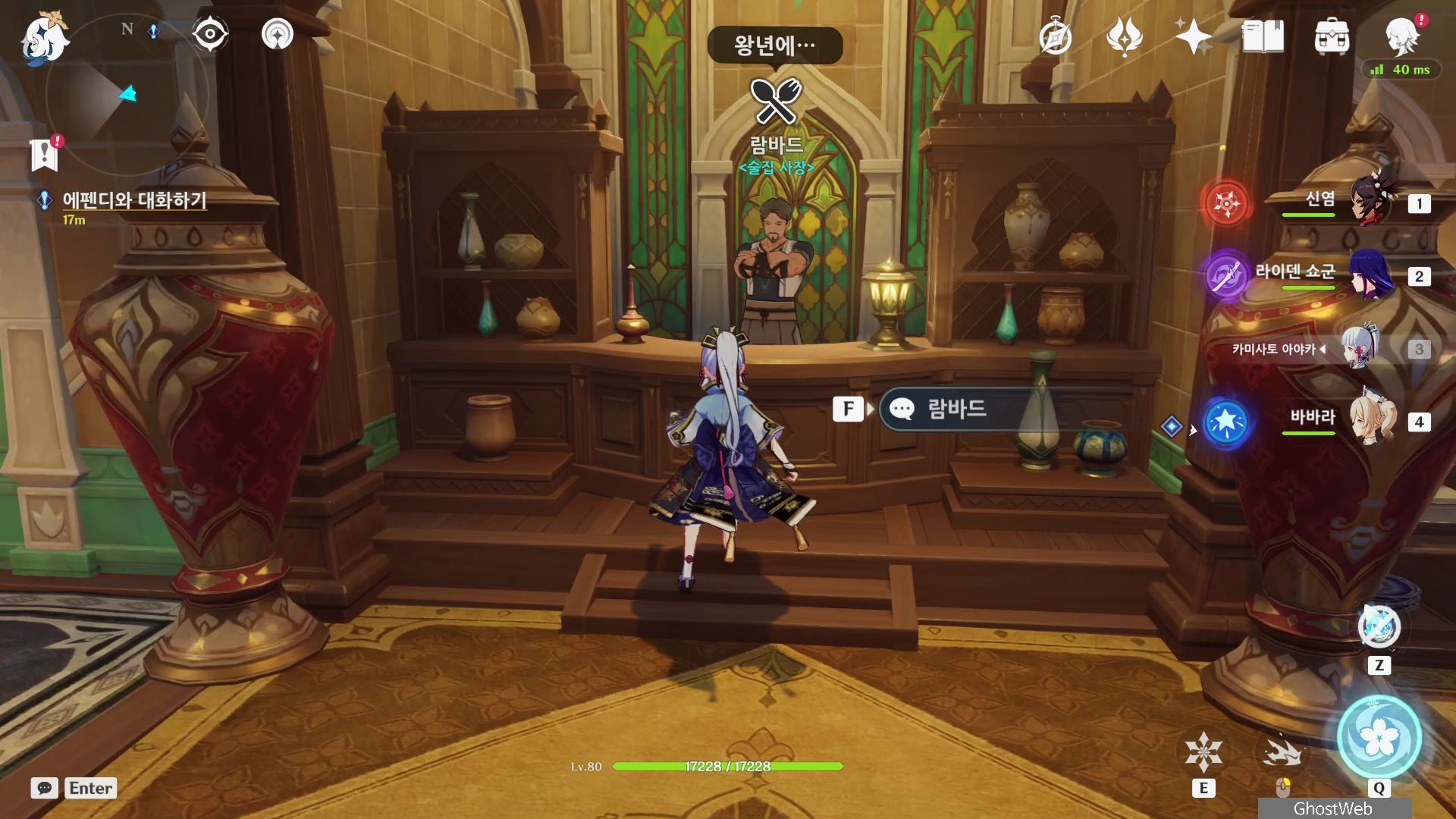 람바드 술집 안으로 들어가 1층에 술집 사장인 람바드에게 레시피, 요리, 요리 재료 등을 구매할 수 있으며, 술집에 있는 NPC 들에게 말을 걸면 아이템을 얻을 수 있어요. (1, 2층에 NPC 존재)