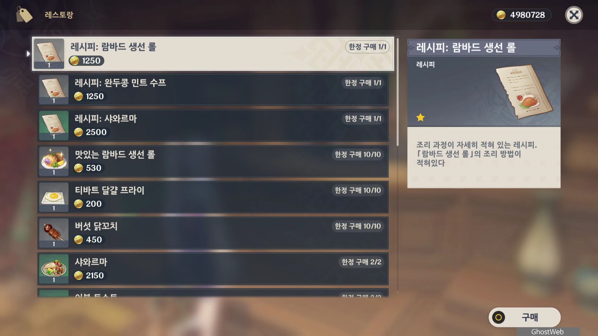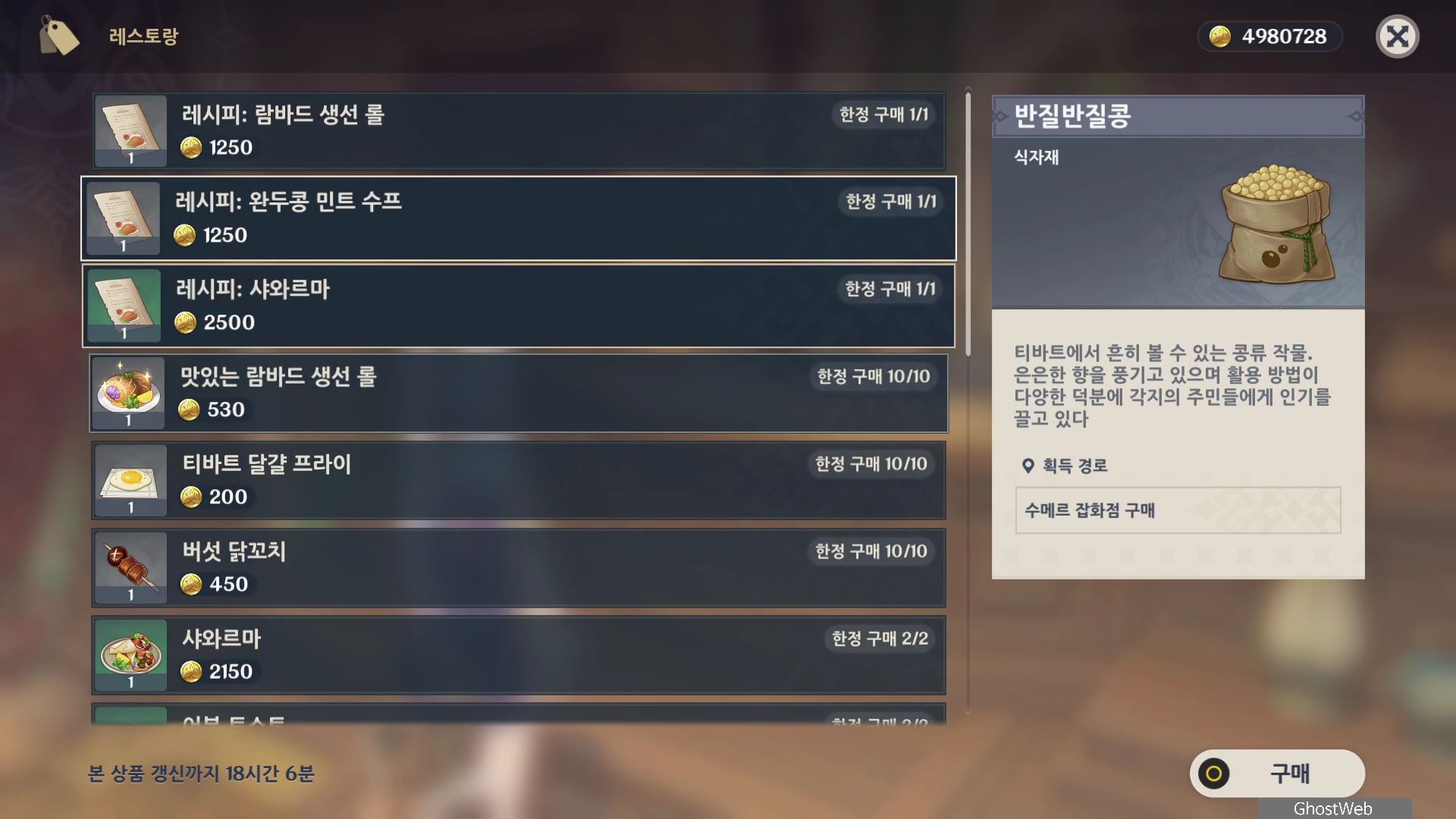 - 샤와르마 (2150 모라, 한정 구매 2개)