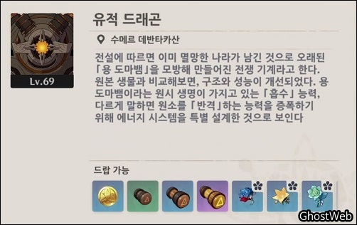 유적 드래곤은 수메르 여러 지역에 대부분 1마리씩 소수로 존재해요.