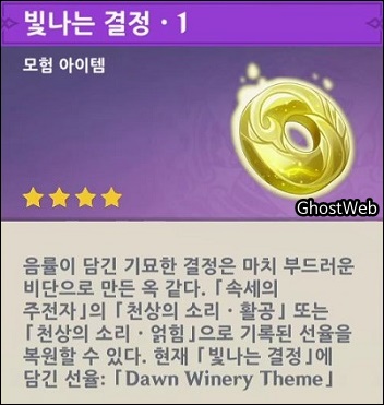 빛나는 결정은 속세의 주전자에서 천상의 소리·활공 또는 천상의 소리·얽힘으로 기록된 선율을 복원할 수 있어요.