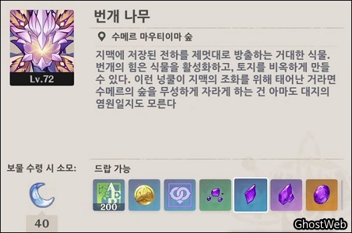이번에는 도리의 육성 소재인 번개를 품은 야생 열매를 얻을 수 있는 번개 나무에 대해서 정리해보도록 할게요.