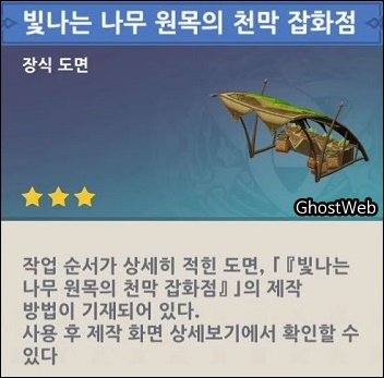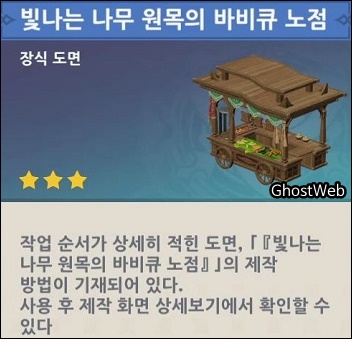 | 6 | 1. 빛나는 나무 원목의 천막 잡화점 (장식 도면) 2. 빛나는 나무 원목의 바비큐 노점 (장식 도면) |