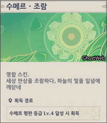 | 4 | 1. 수메르 - 조람 (명함 스킨) 2. 타친 (레시피) 3. 수메르 상점 추가 할인 - 람바드와 하마위에서 상품 구매 시 가격 할인 |