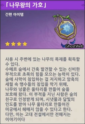 | 3 | 1. 나무왕의 가호 (간편 아이템, 주변 목재 획득) | ![]() |
