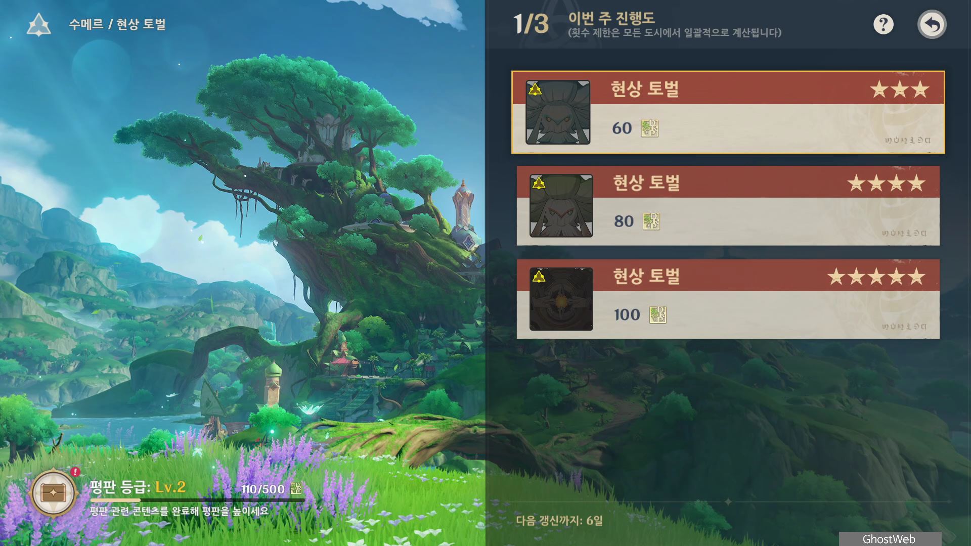 어느 정도 캐릭터/무기/성유물 셋팅이 되신 분은 100 경험치 짜리로 빠르게 평판 등급을 올리세요.