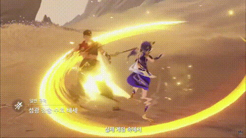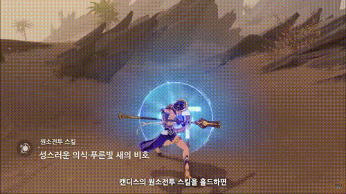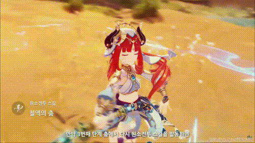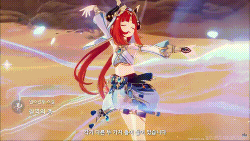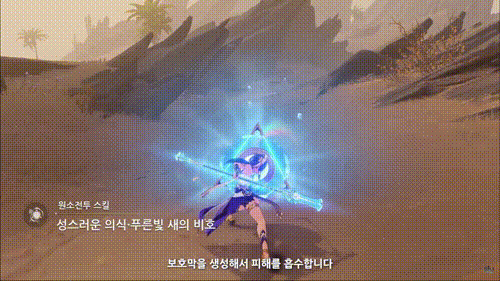 - 원소전투 스킬 발동 후 3번째 단계 춤에서 일반공격을 하면 <검의 춤>을 시전하고 닿은 적에게 물 원소 피해를 줌