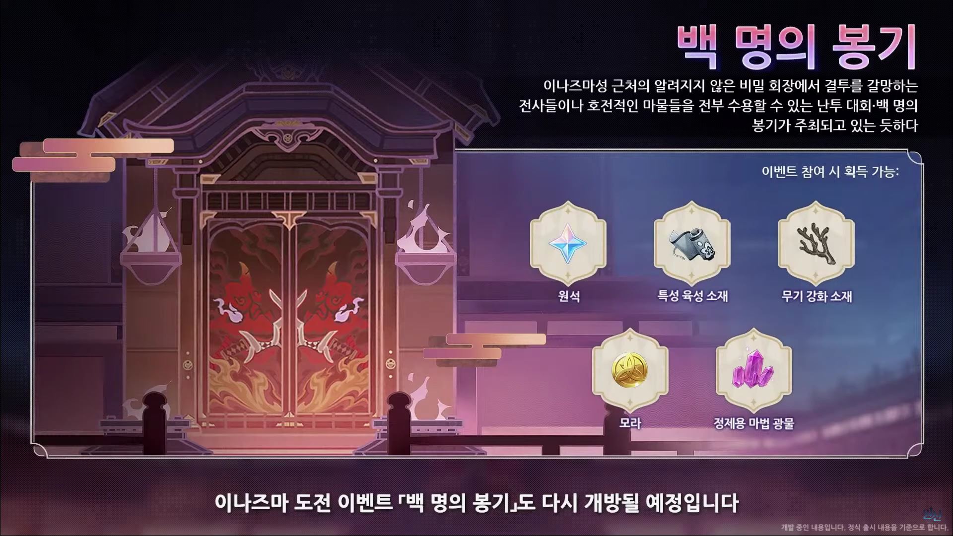- 보상 : 원석, 특성 육성 소재, 무기 강화 소재, 모라, 정제용 마법 광물