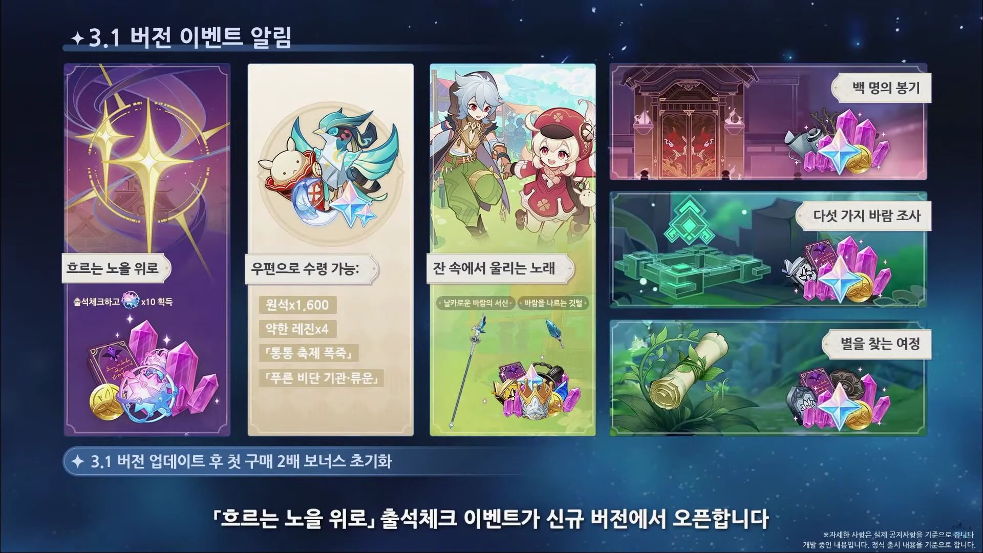 20022-09-16 방송된 원신 3.1 버전 특별 방송 내용을 정리해 보도록 할게요.