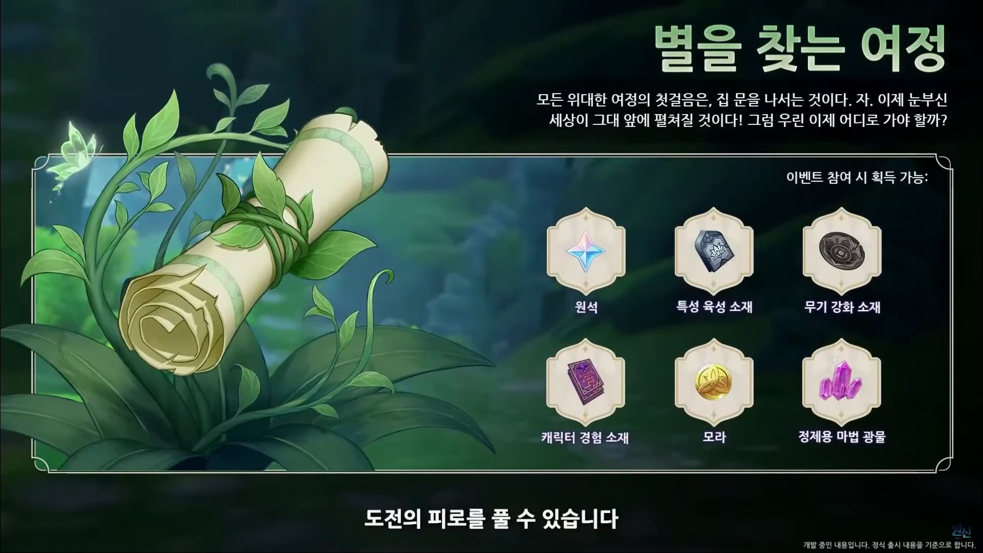 - 보상 : 원석, 특성 육성 소재, 캐릭터 경험 소재, 모라, 정제용 마법 광물