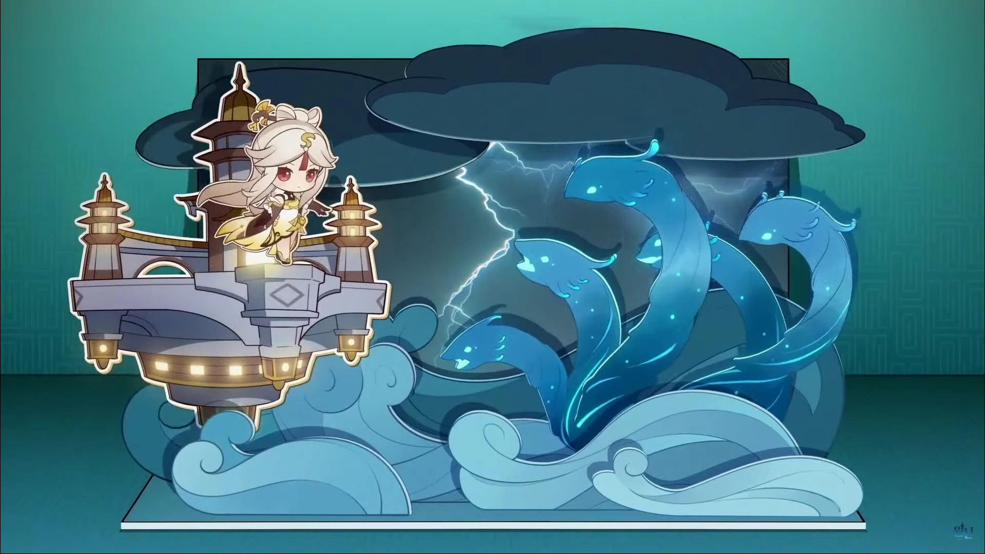 - 파티 내 풀 원소, 물 원소 캐릭터가 최소 1명씩 있으며 파티가 물 원소 혹은 풀 원소 캐릭터로만 구성된 경우 칠역의 춤 3번째 단계 춤은 근처에 있는 모든 캐릭터에게 <황금잔의 선물> 상태 부여