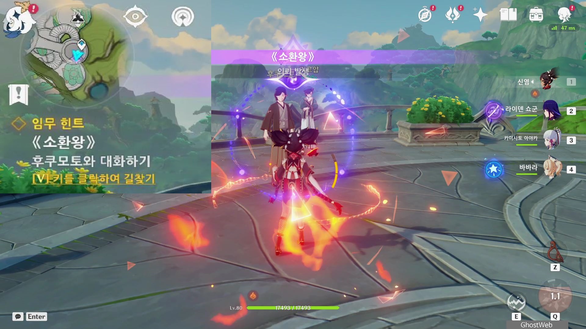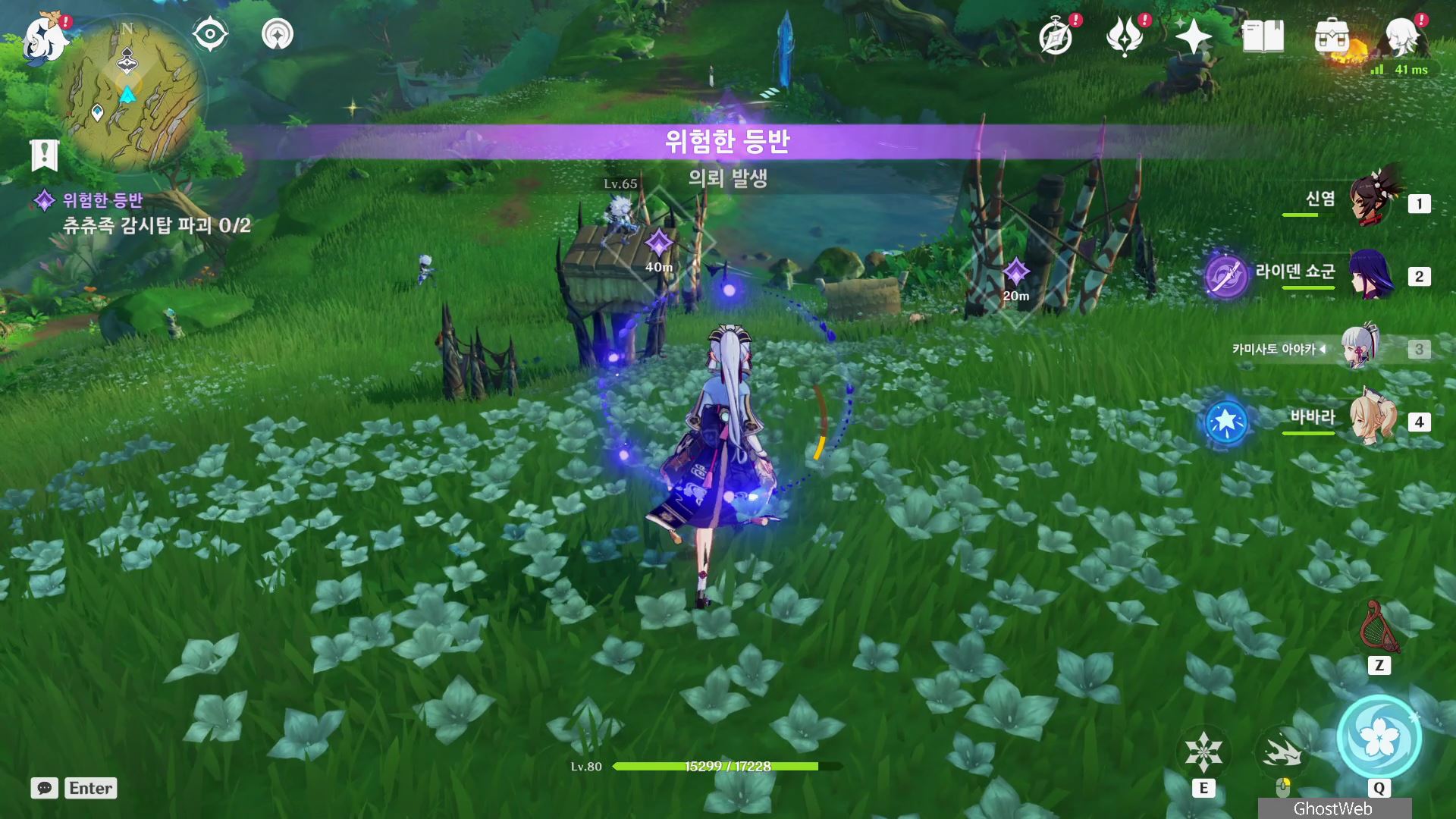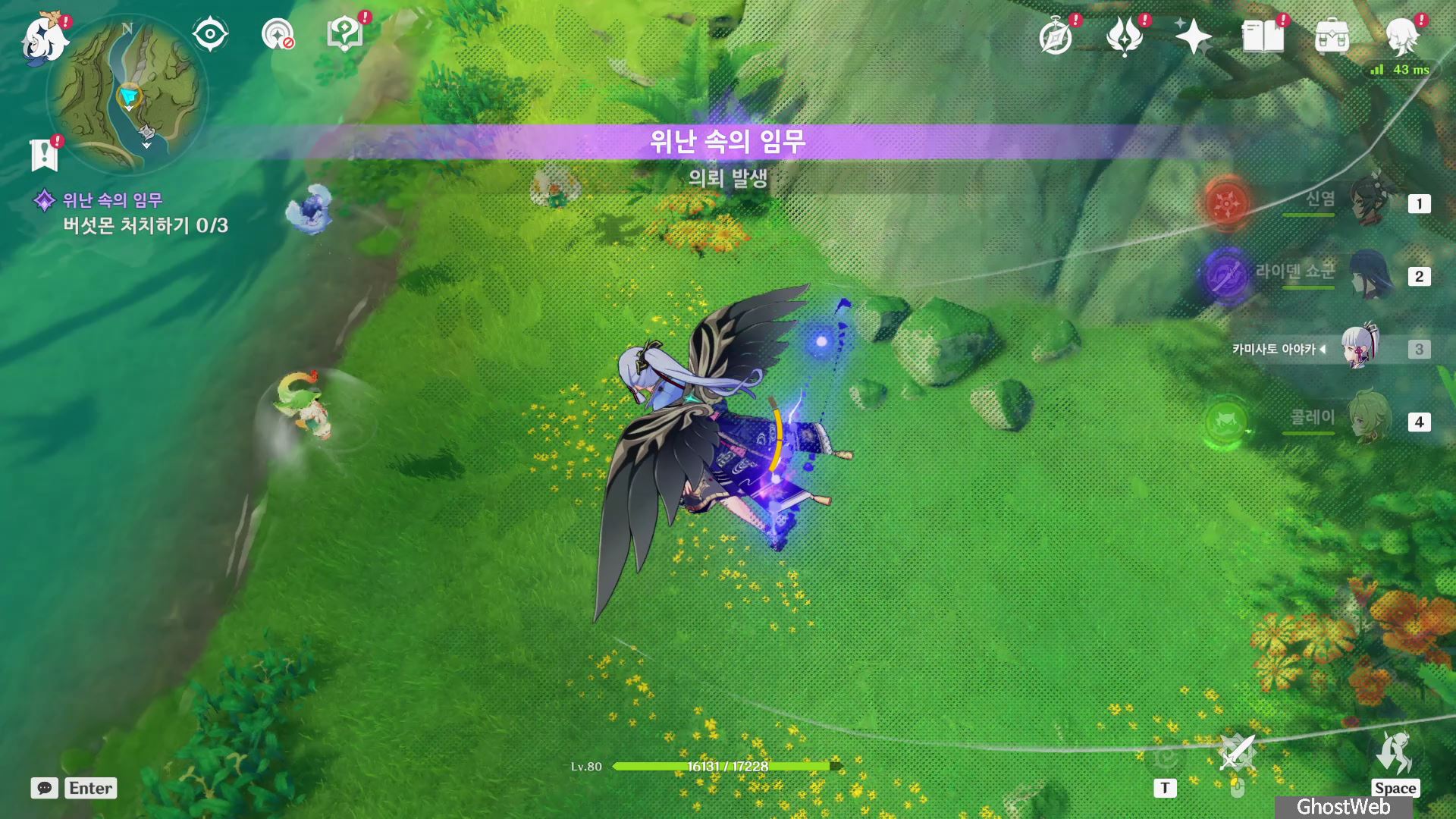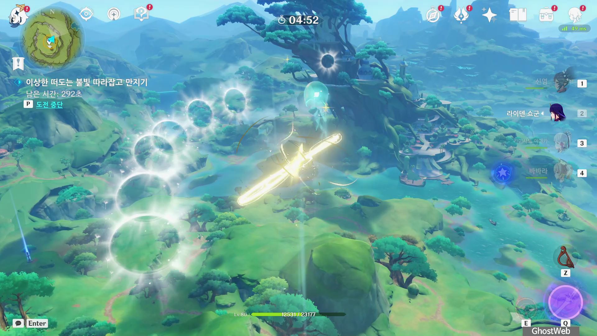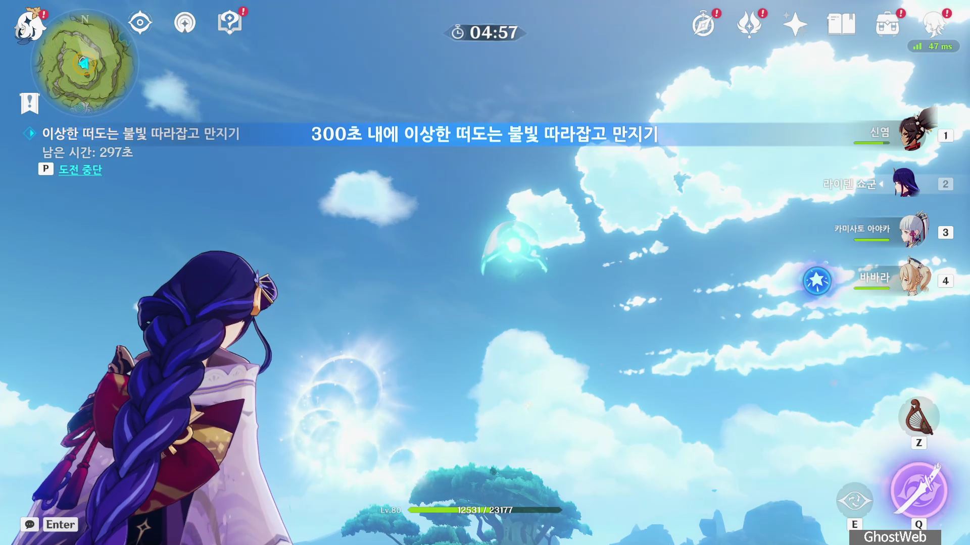- 윈드 필드, 로프(T 키)를 타고 공중을 날라다니는 불빛을 따라 잡으면 완료