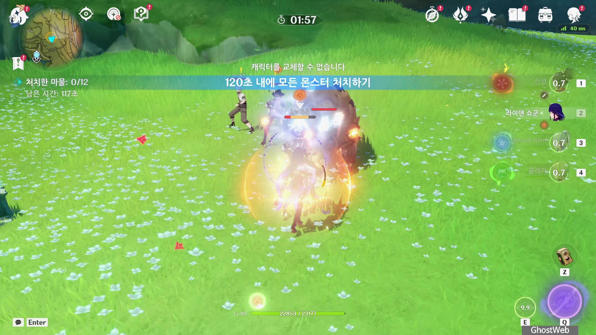 - 120초 내에 모든 몬스터 처치하면 완료 (보물 사냥단, 도금 여단)